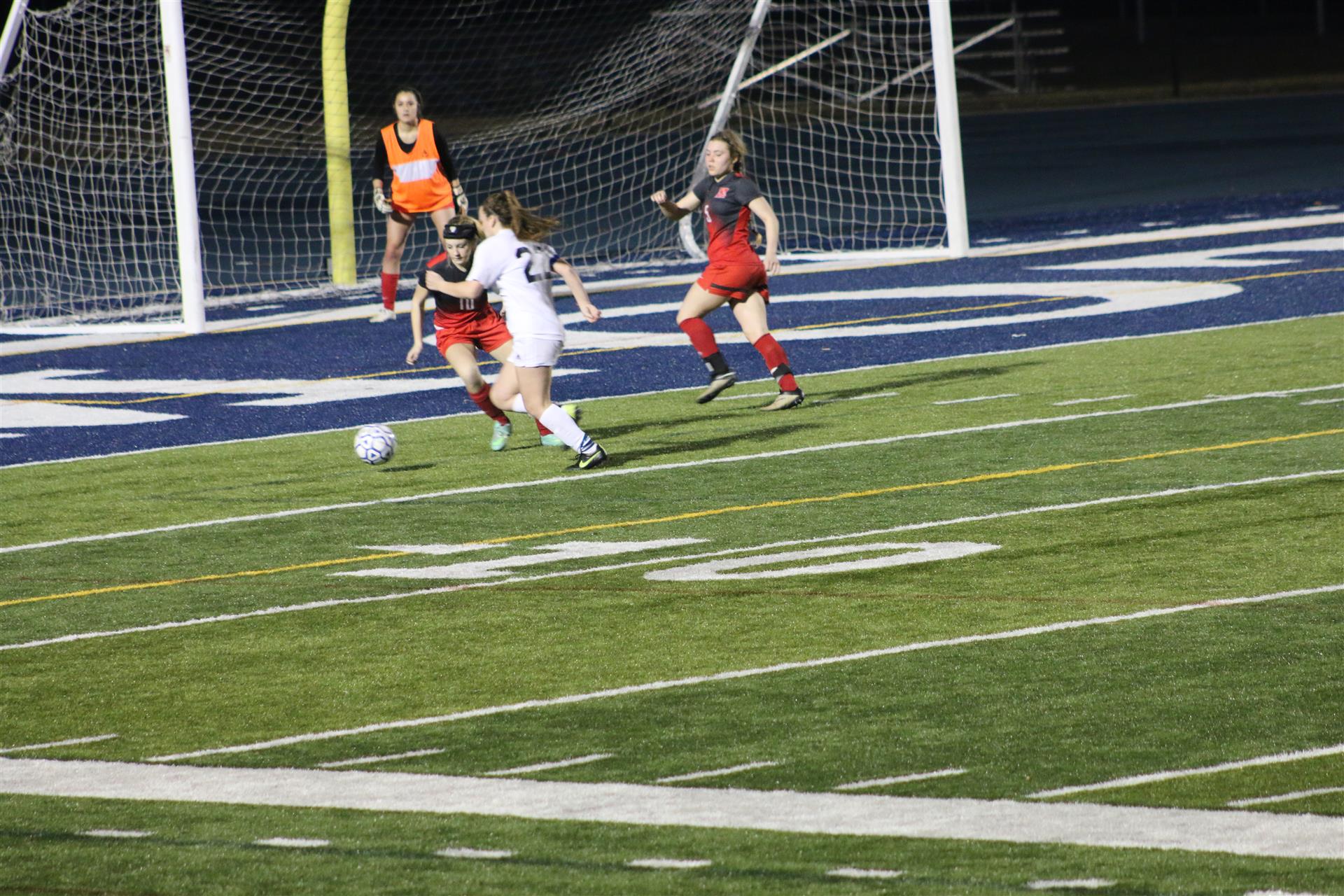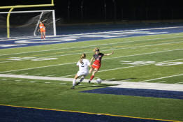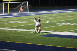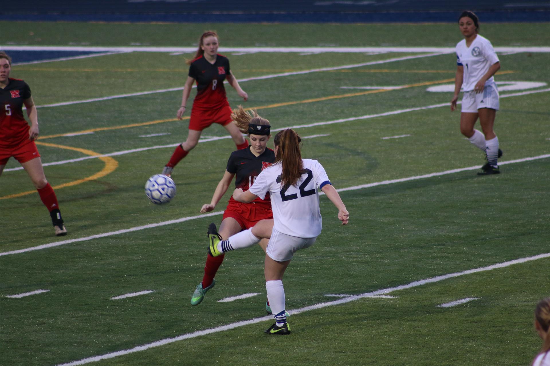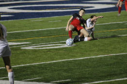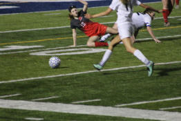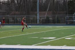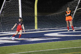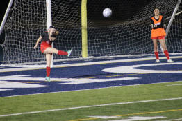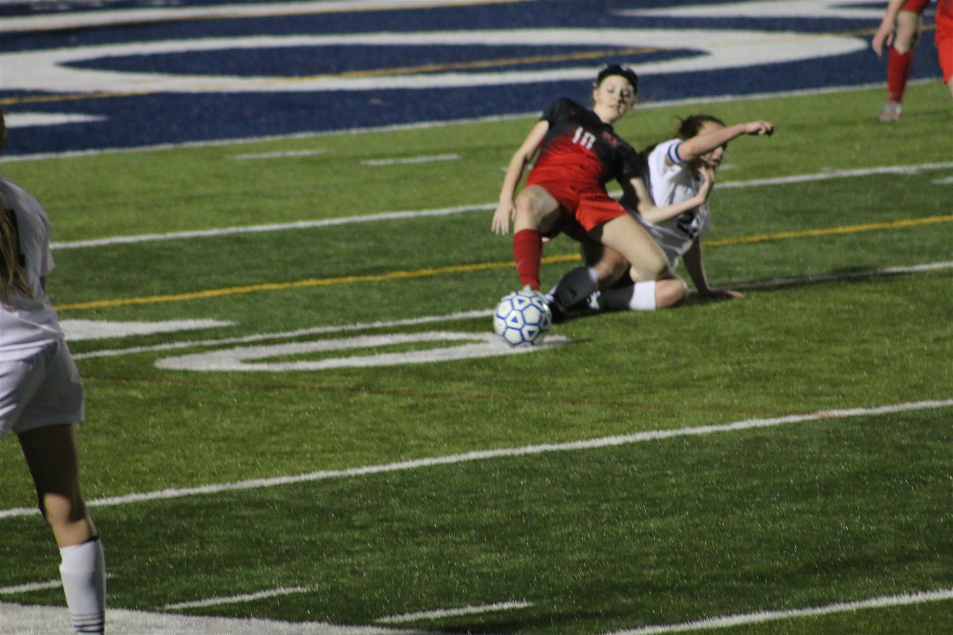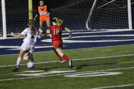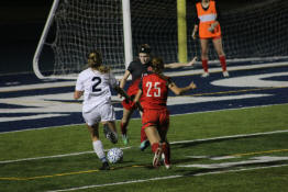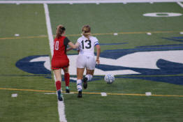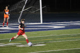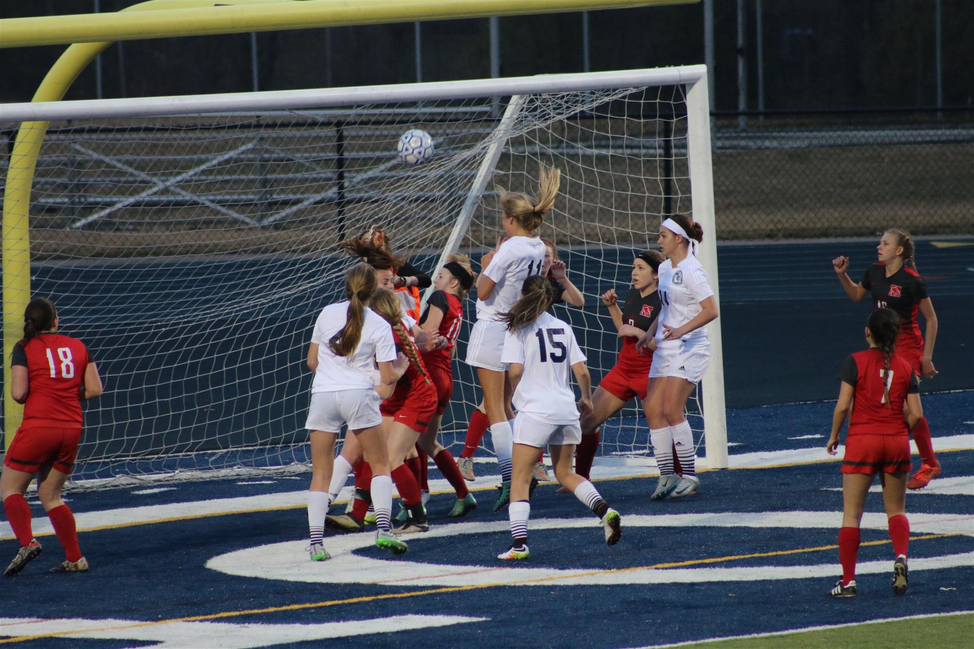 Sam and her Holly Bronchos teammates in the pregame huddle