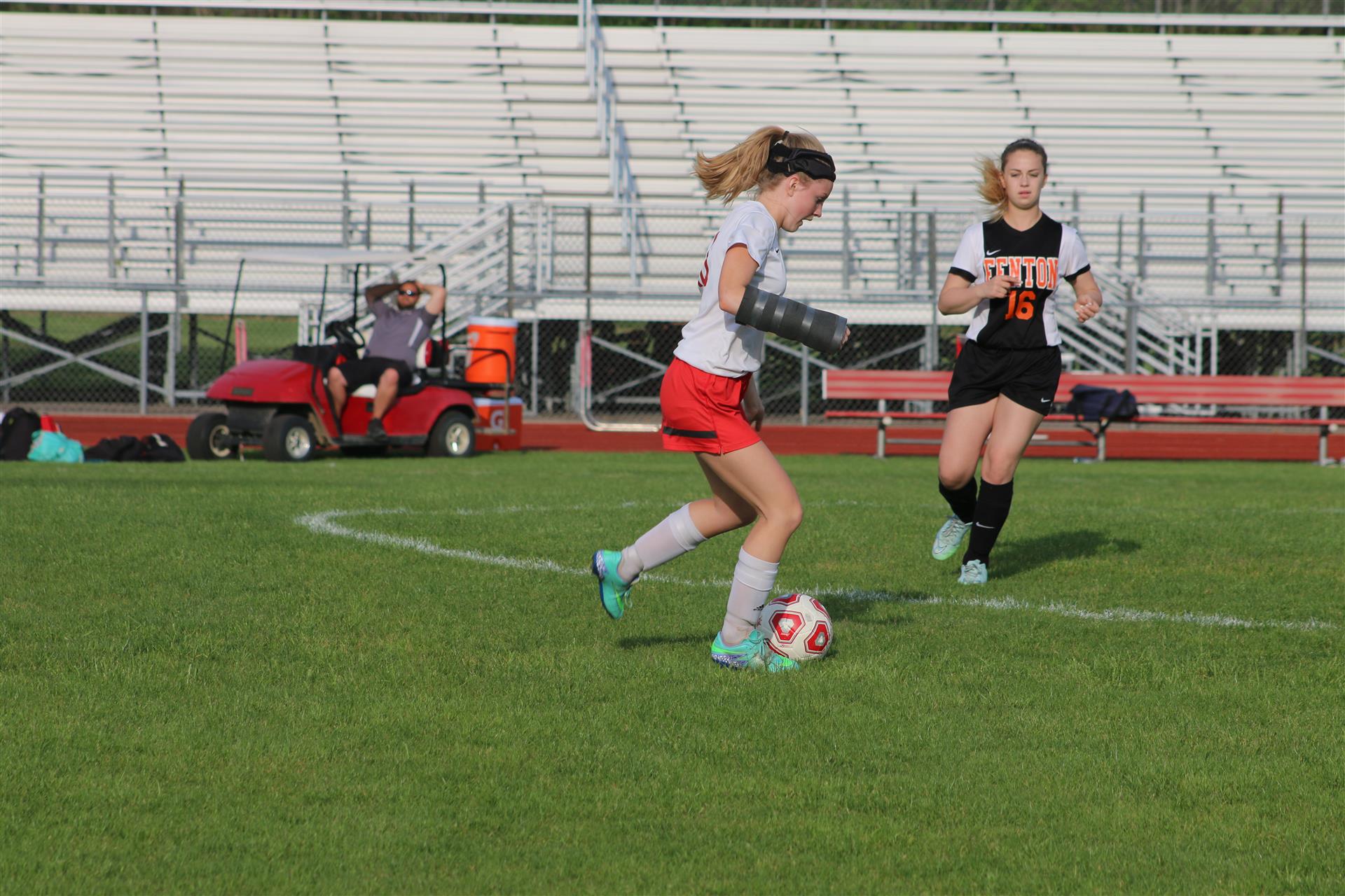 Tonight the Holly Bronchos girls took on the Fenton Tigers in a rematch game, though this one was technically not a league game and didn't count in the standings. Too bad, because the girls played much better today. Despite their efforts, it wouldn't be enough to overcome the superior talent that Fenton puts on the field. Two first half goals by Fenton would be all they would need. The two teams traded goals in the second half, with the final being 3-1.
