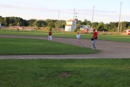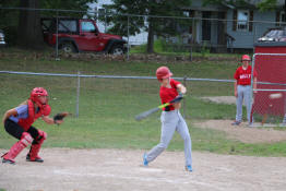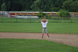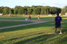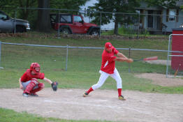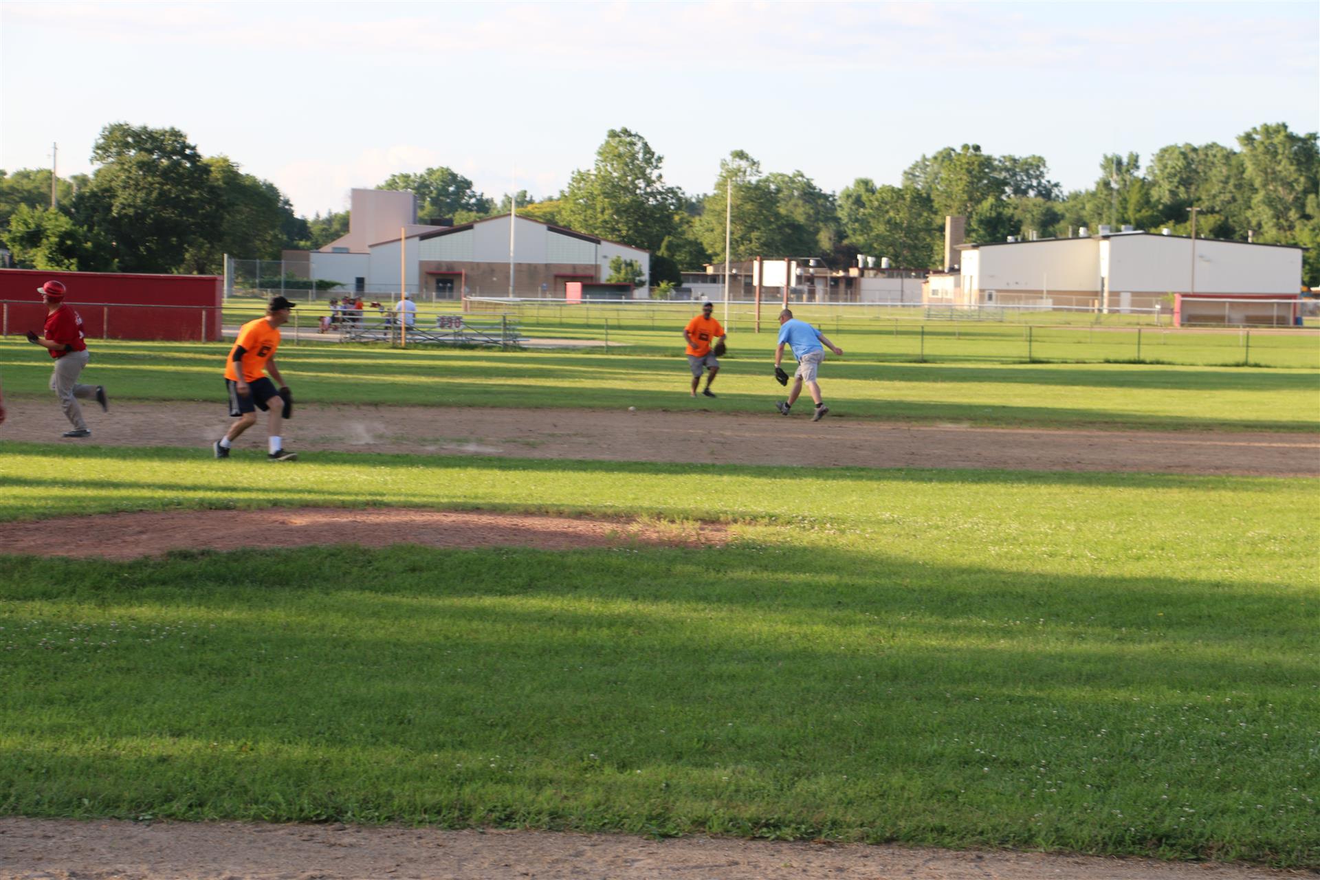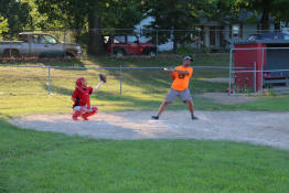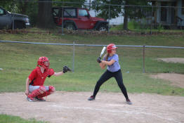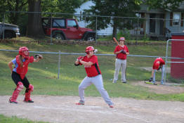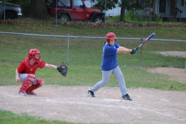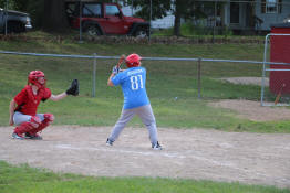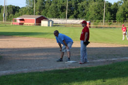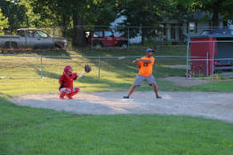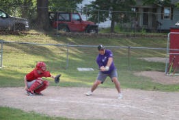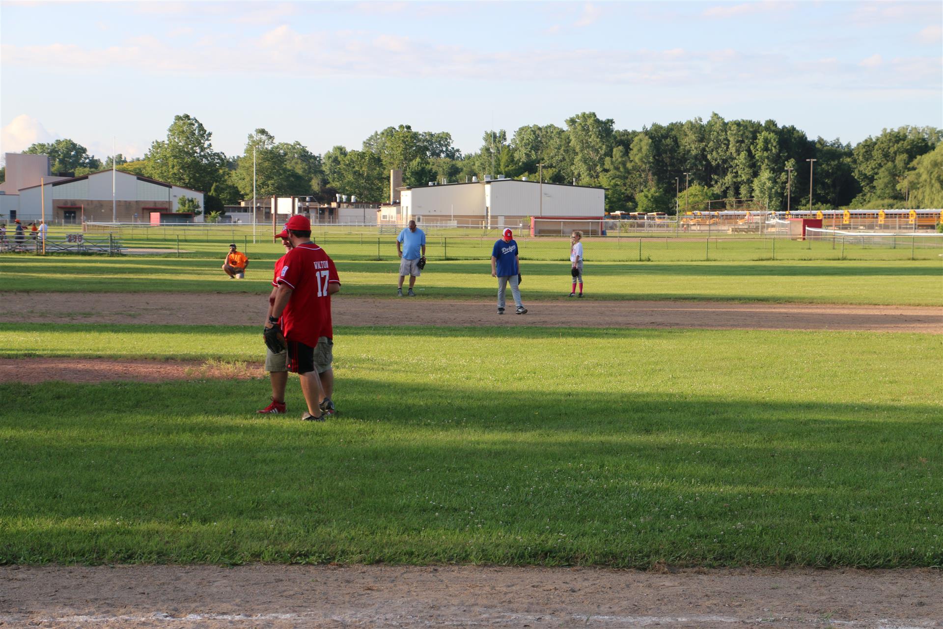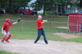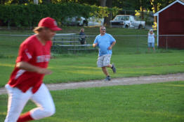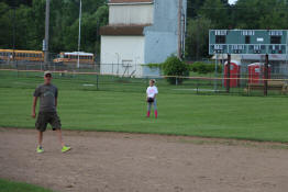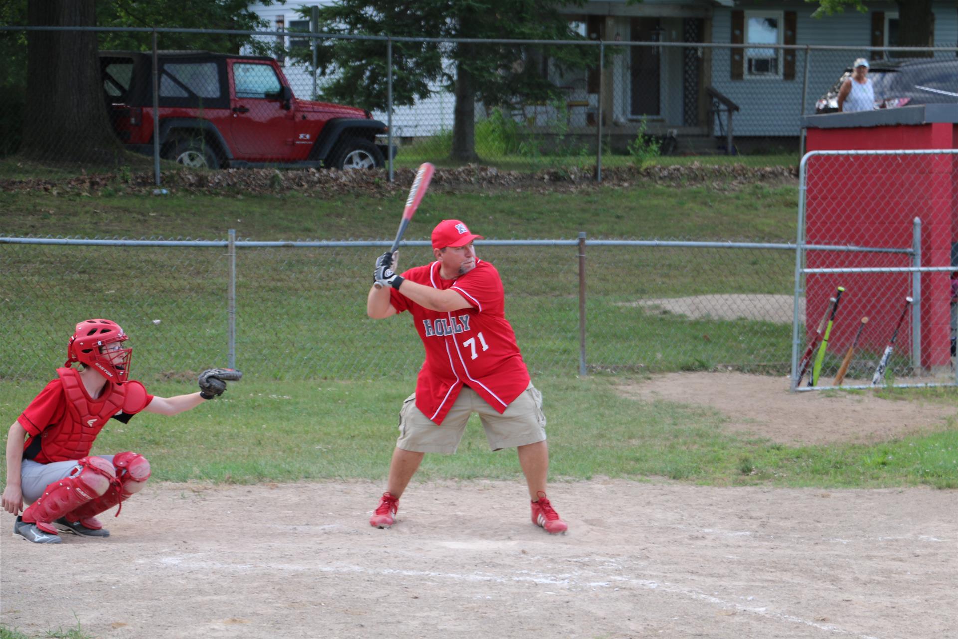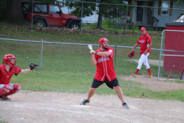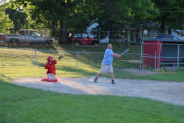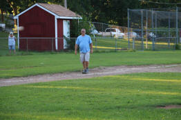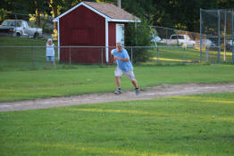 Dan K., Joe's dad, pitching for the parents and sibling team.