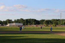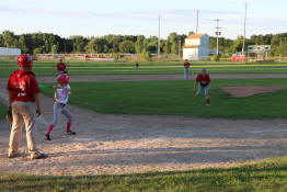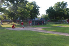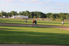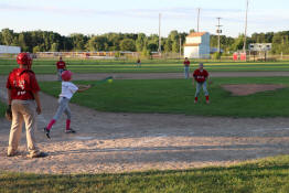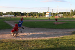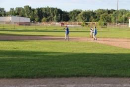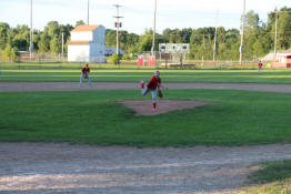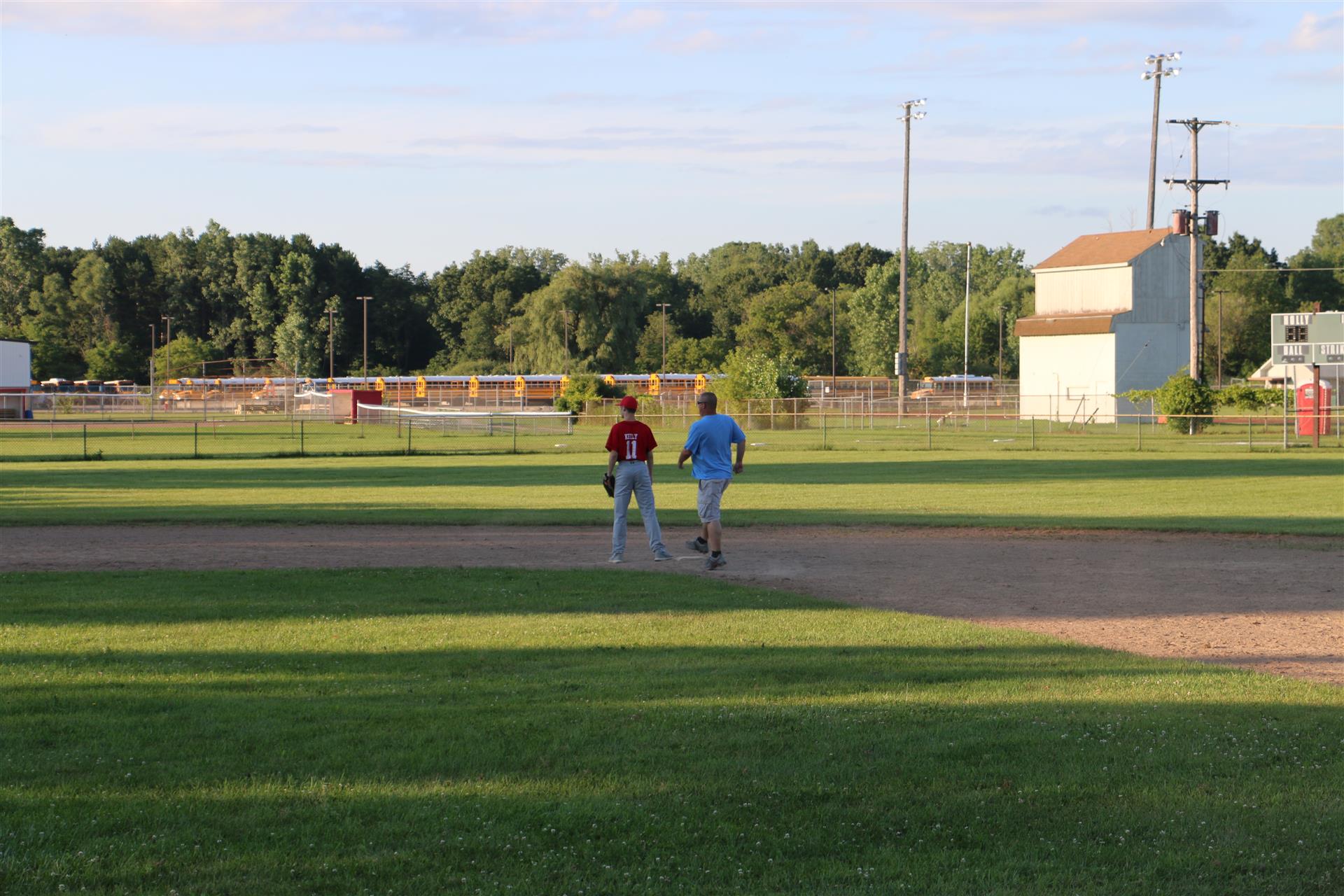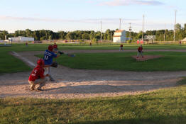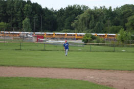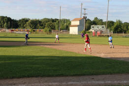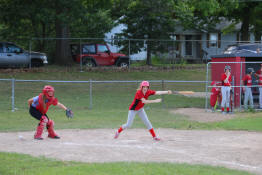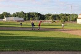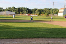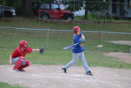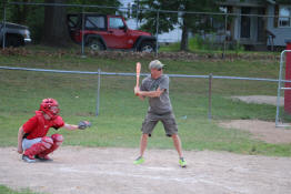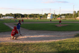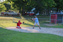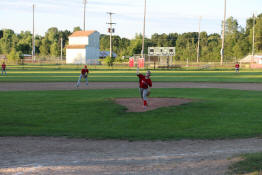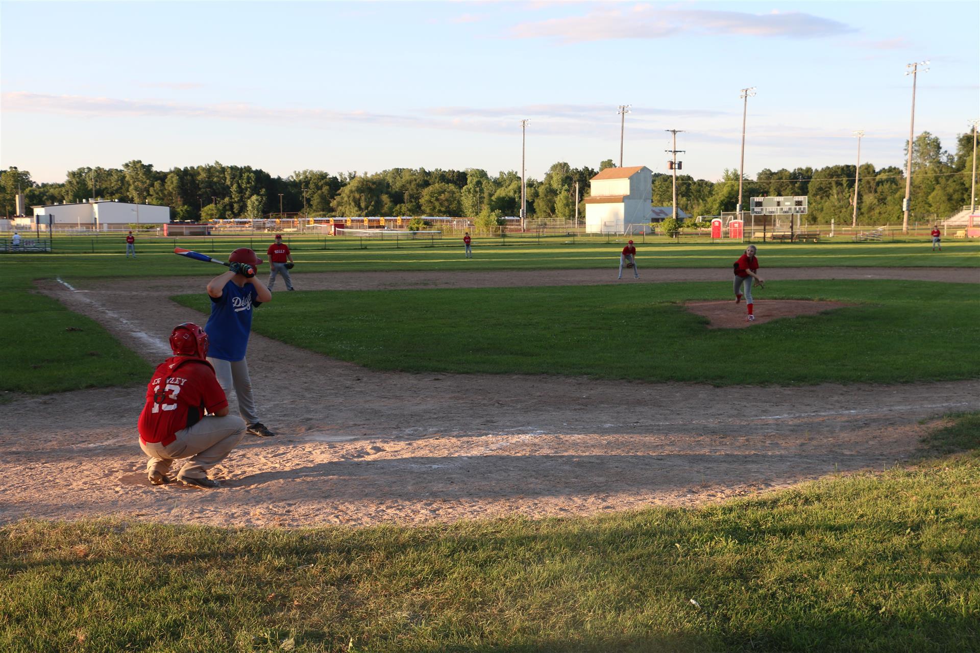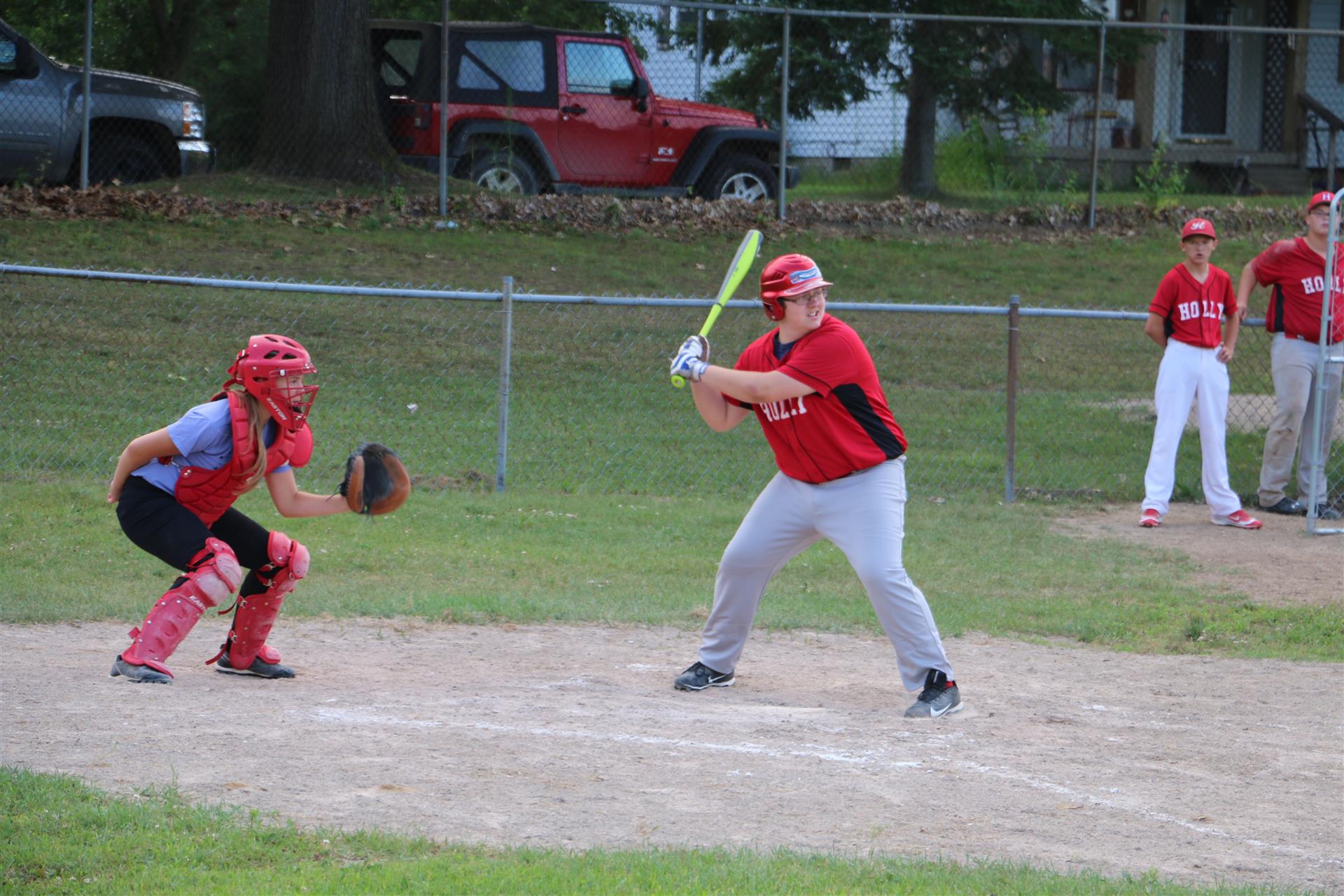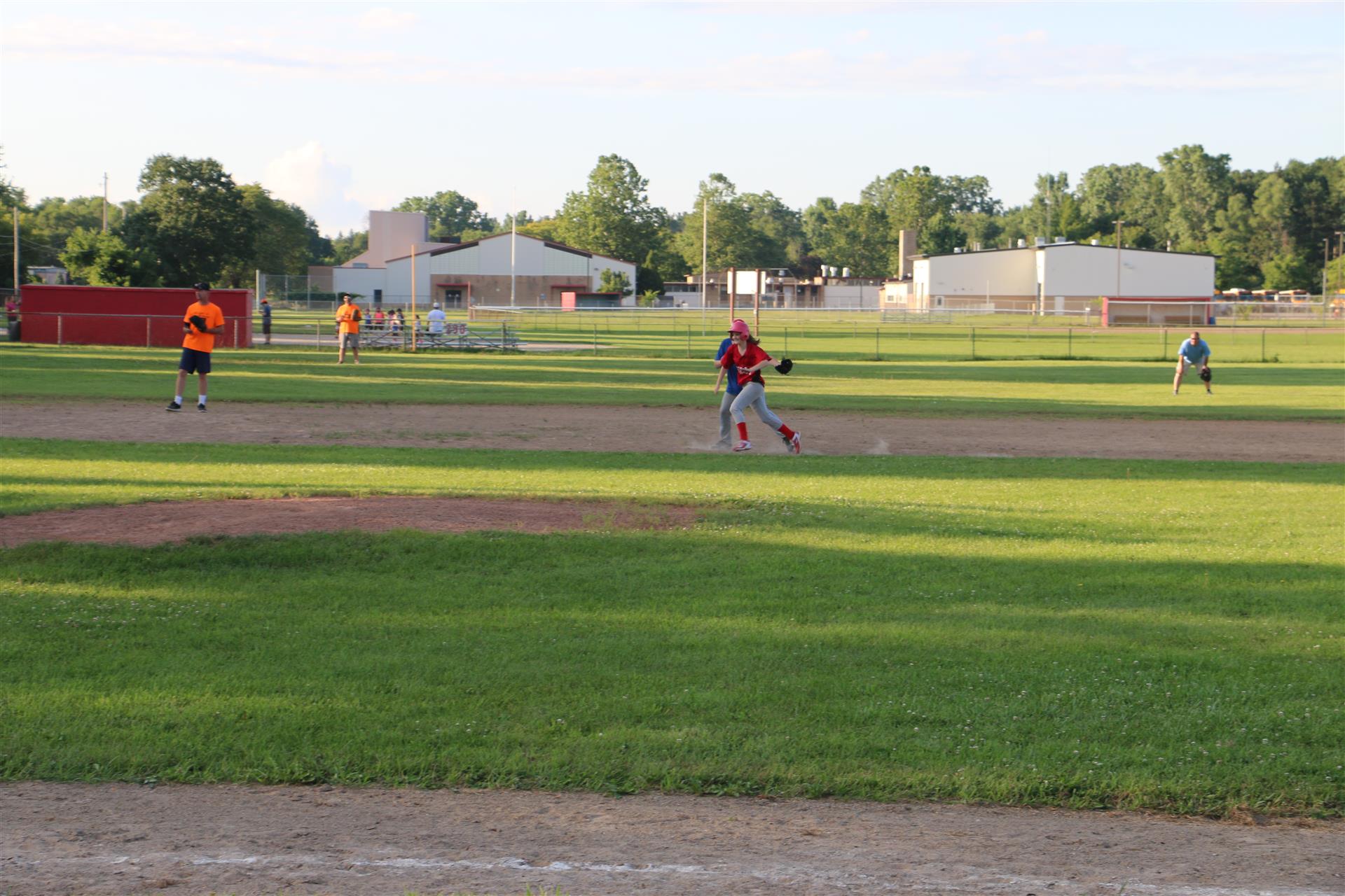 Dan K., Joe's dad, pitching for the parents and sibling team.