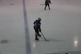 Drew battling along the boards for possession of the puck.