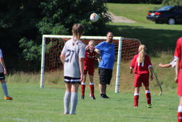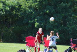 Jayden challenging for the ball...