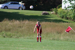 Jay taking a shot on goal while playing forward.