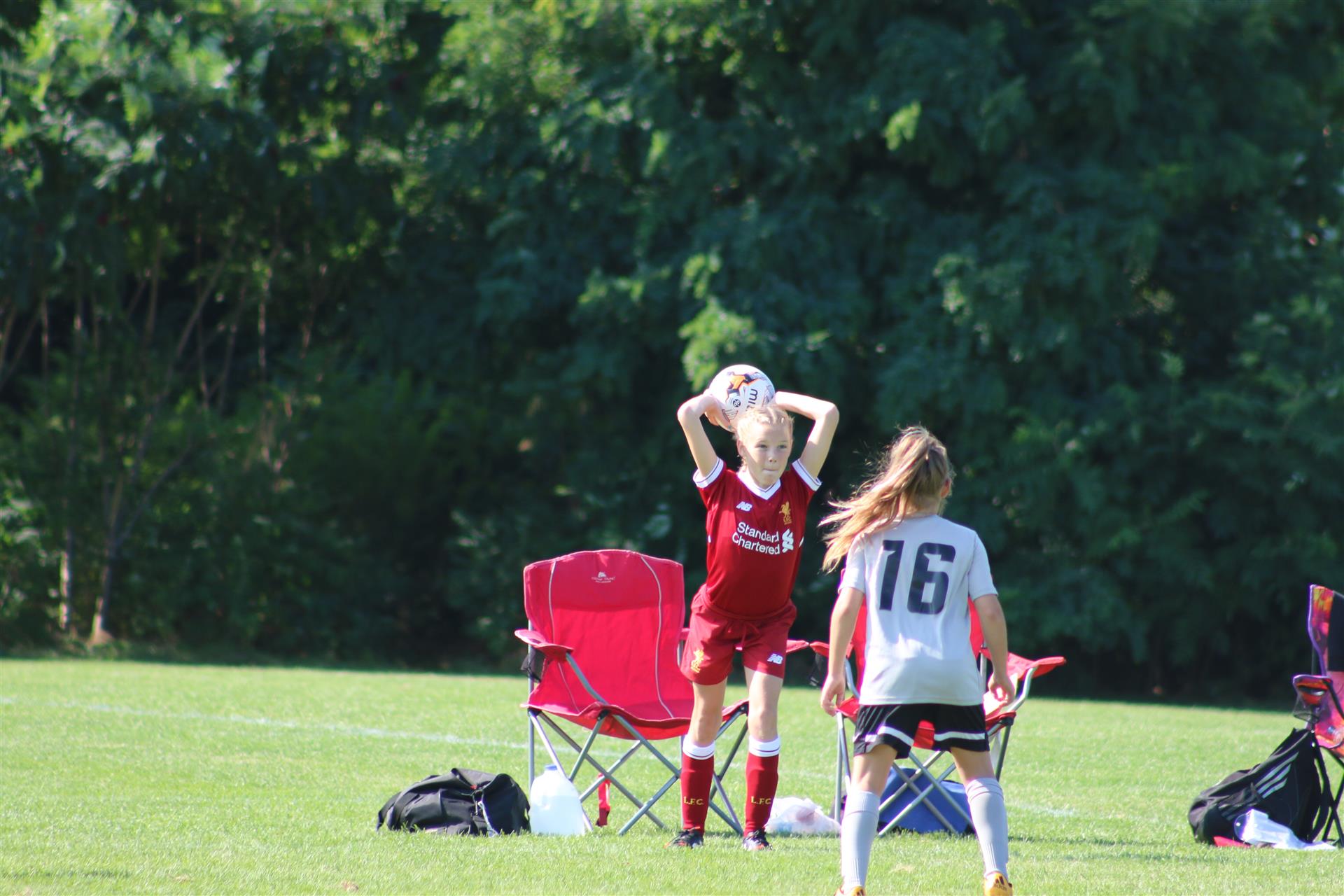 Jay taking aim on a sideline throw-in...
