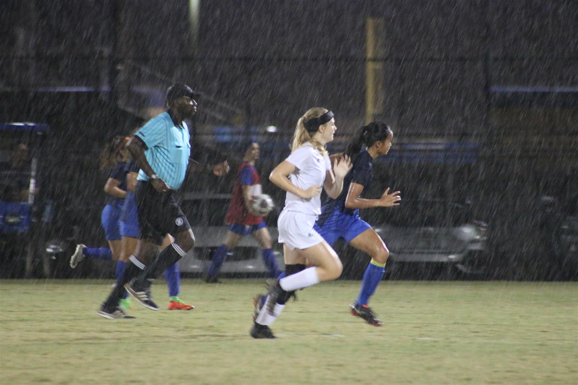 Samantha and her Venice Indians teammates playing in a torrential
