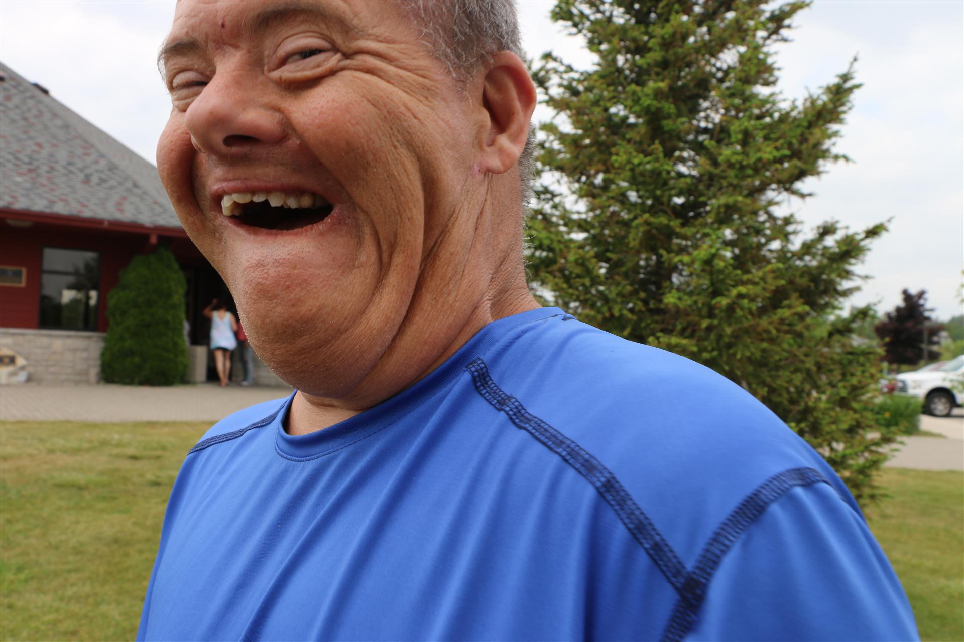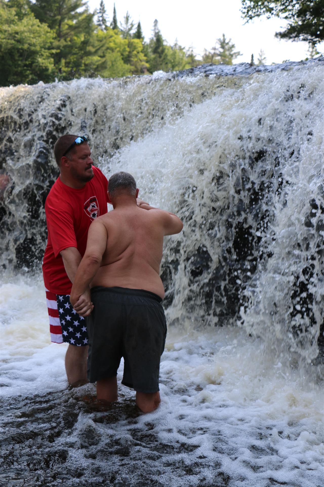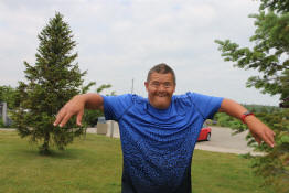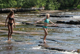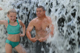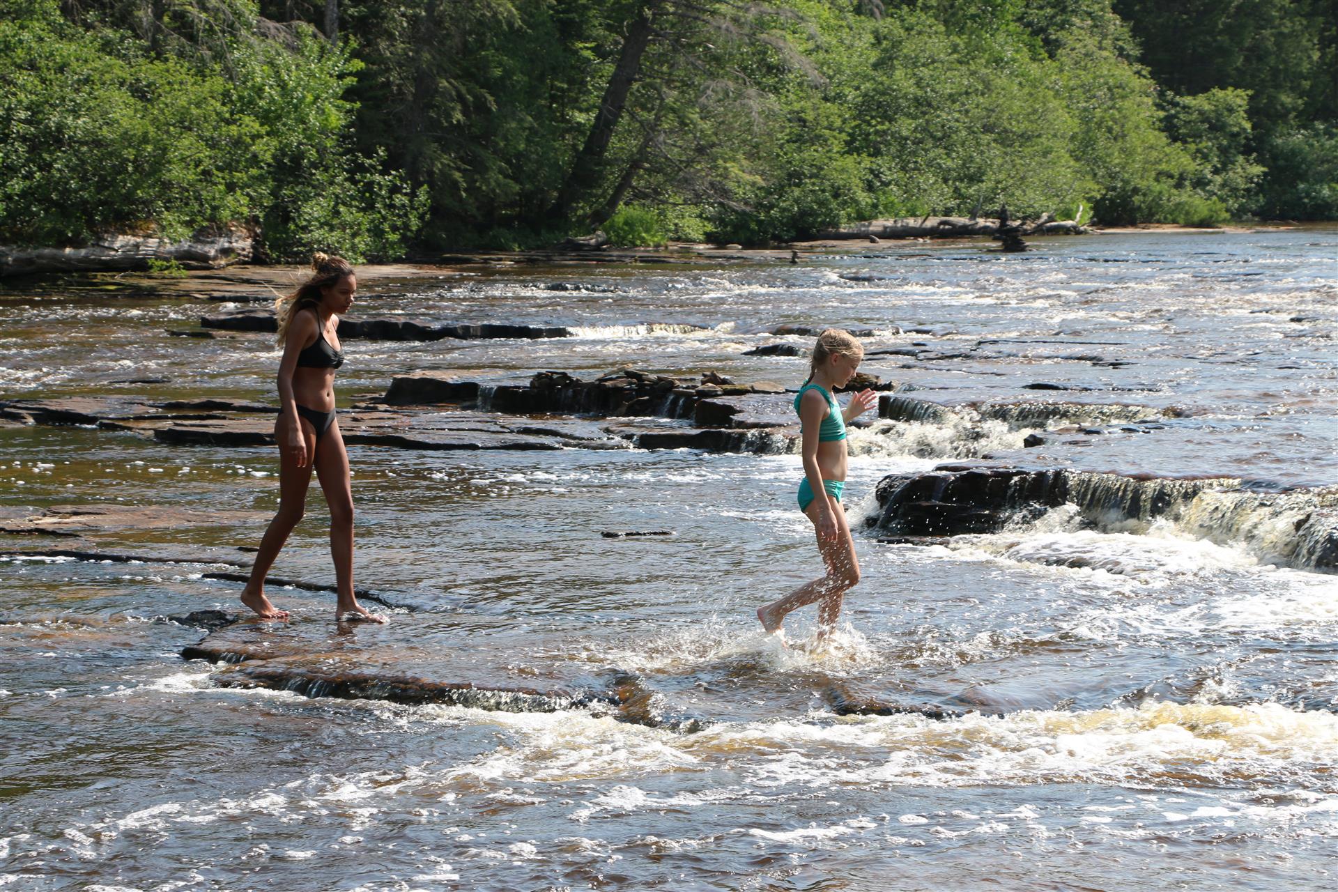 Rodney and Samantha helping Uncle Steve walk along the trail