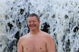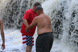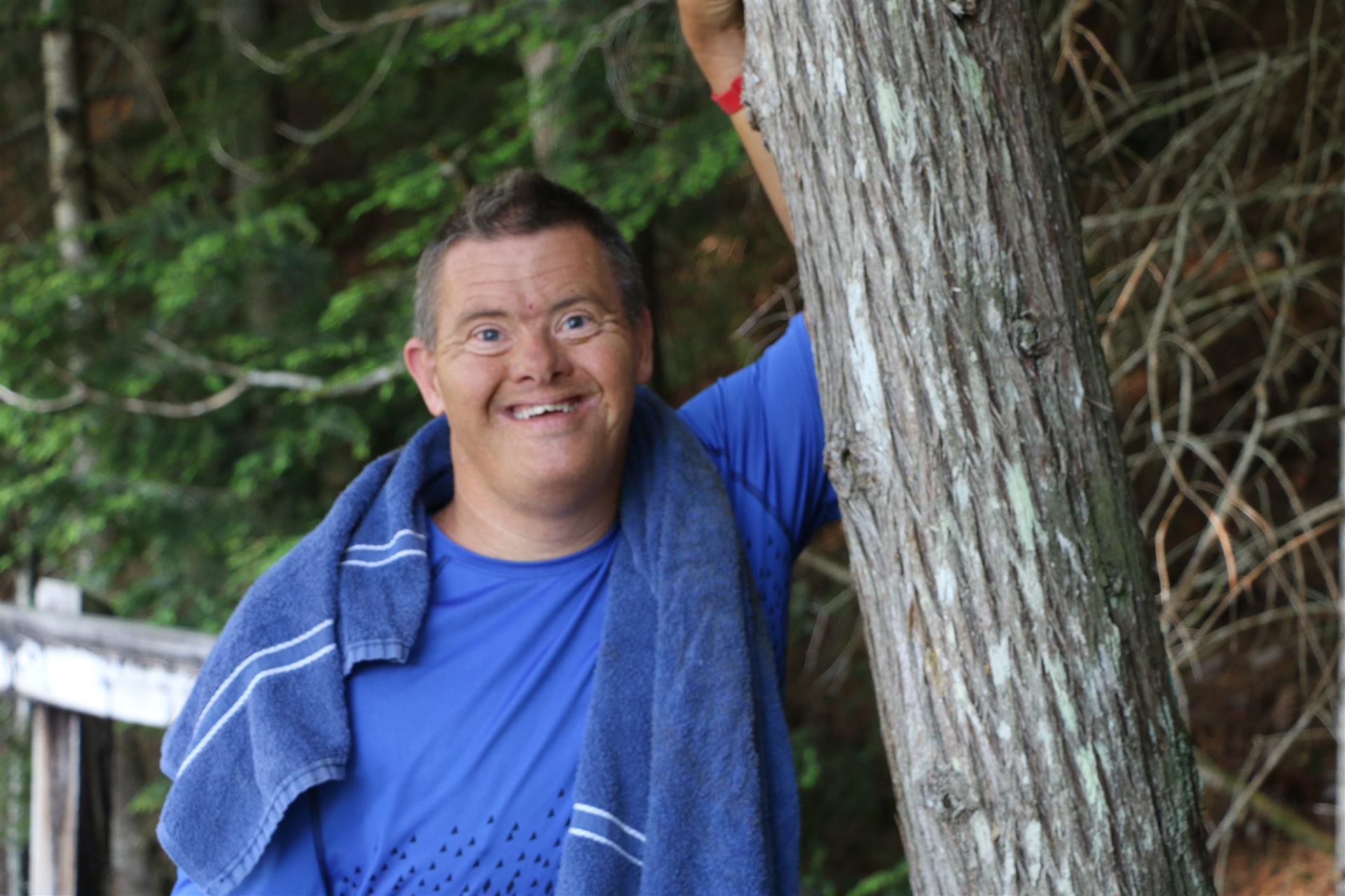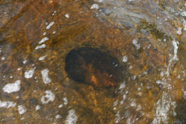barefoot. His feet did not take kindly to the rocks on the trail.