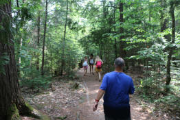 Jayden, Marissa, Samantha, and Uncle Steve walking on the trails