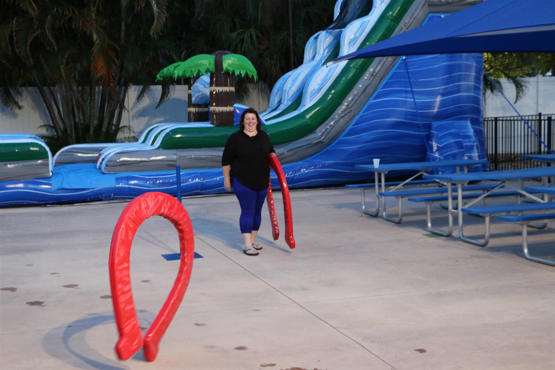 Drew, Sam, Marissa, and Jay playing "Hippo Chow Down", a human