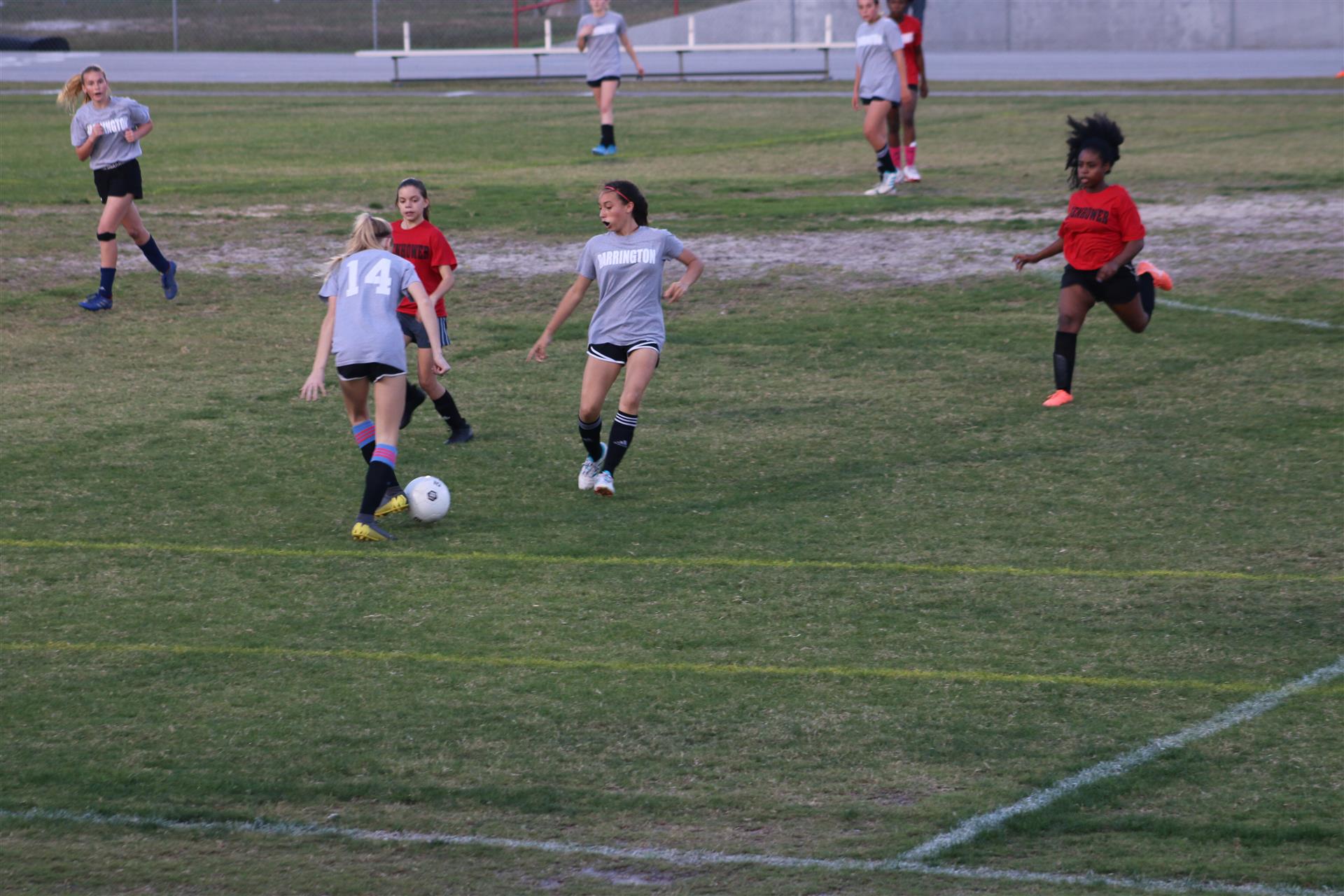 Jayden settling down a bouncing ball along the sideline.