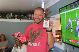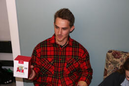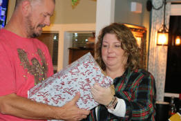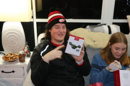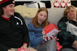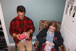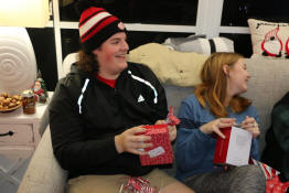 Derek and Samantha opening their gifts from Grandpa Gary &