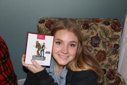Marissa posing for a picture with her gift from Grandpa Gary &