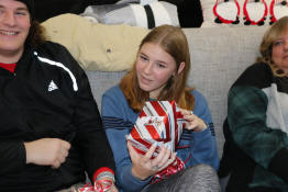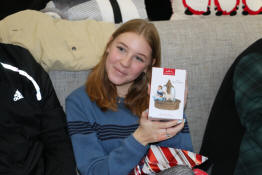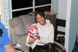 Aunt Erica checking out the other gift that Grandpa Gary &