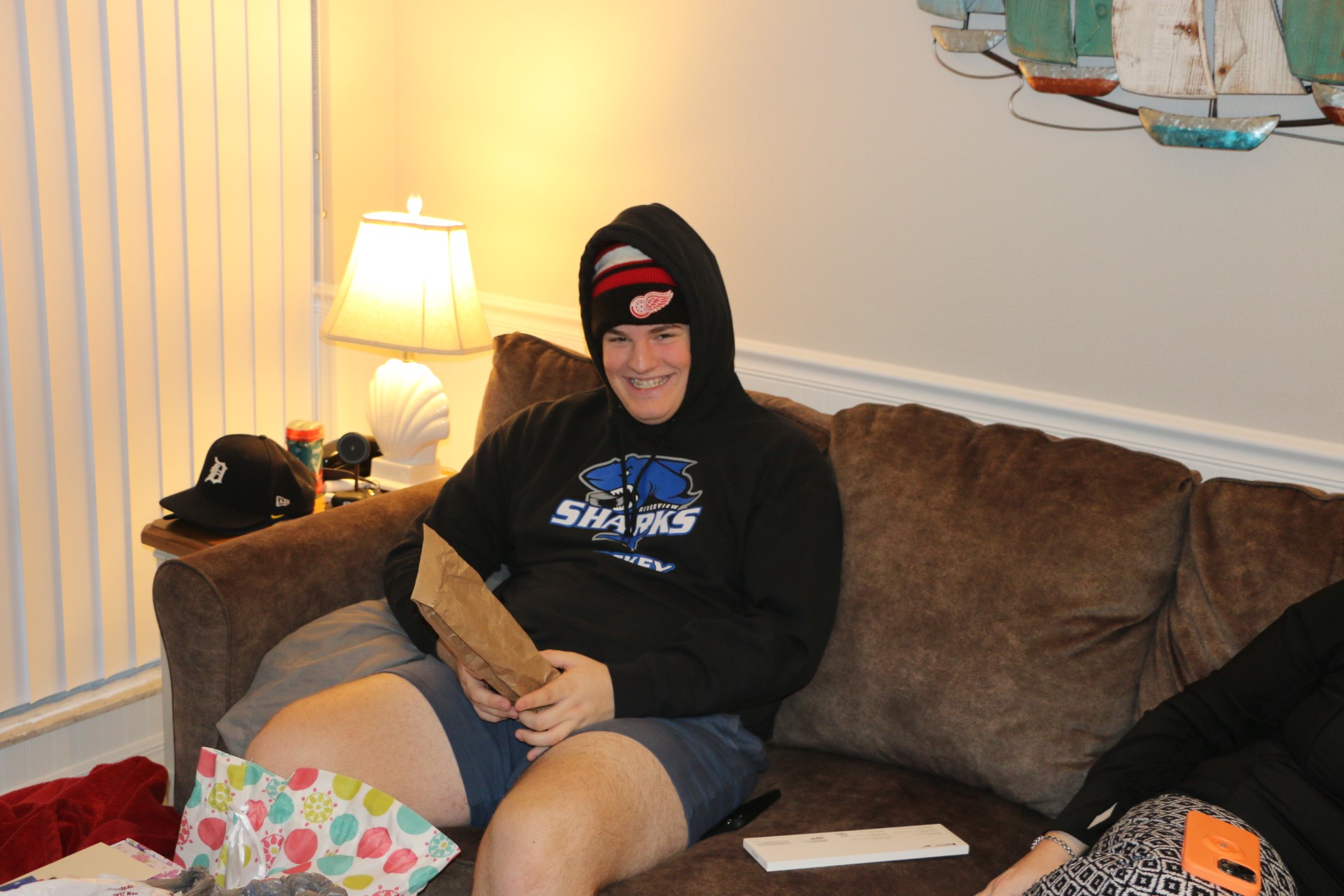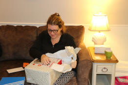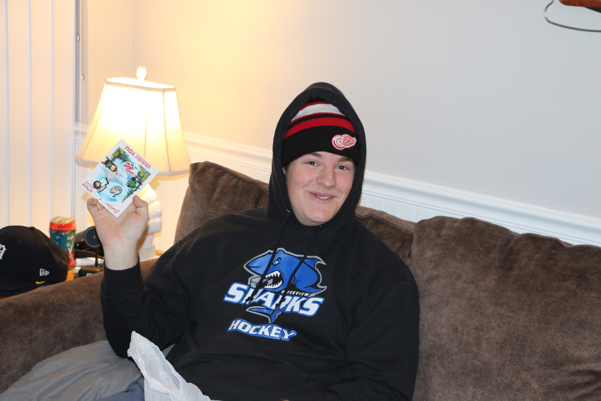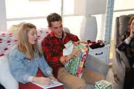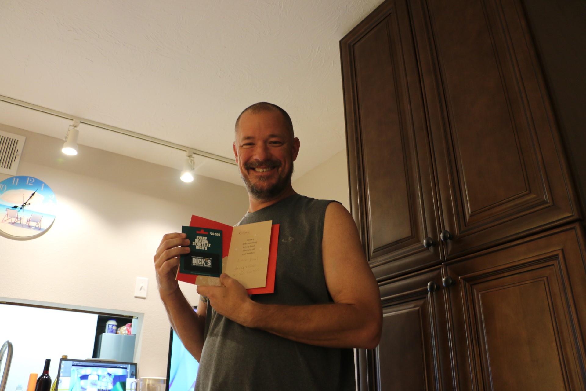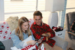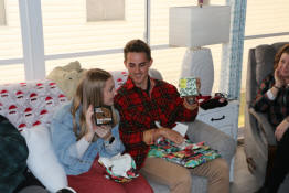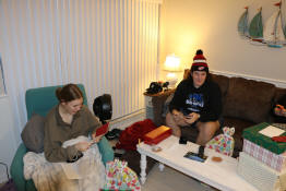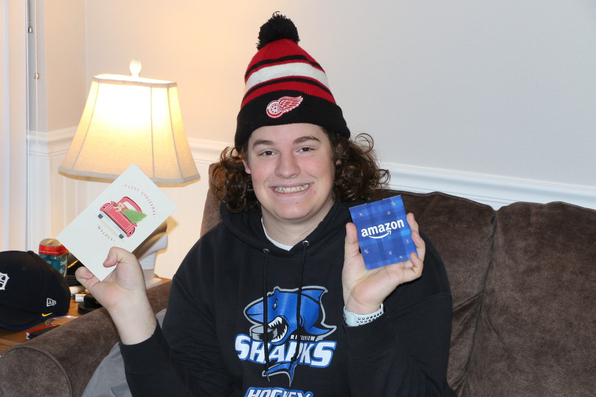 Jayden and Drew opening their cards from Grandpa Jerry & Grandma