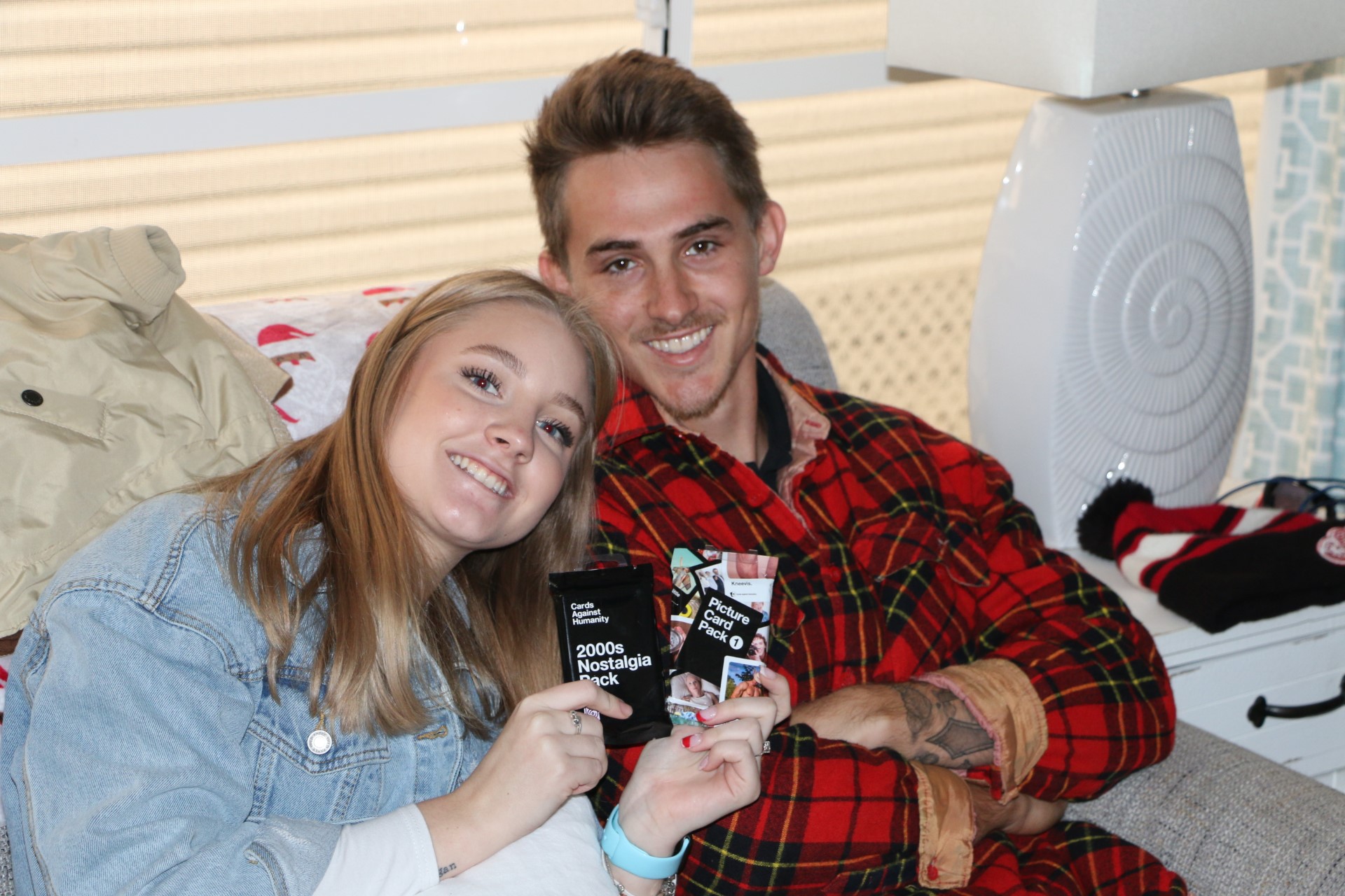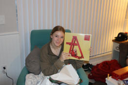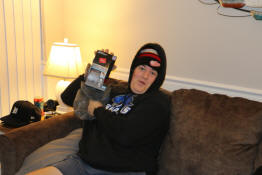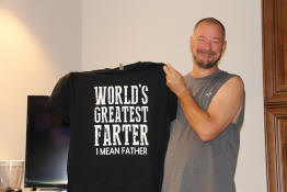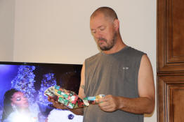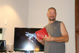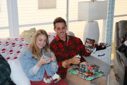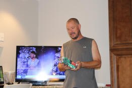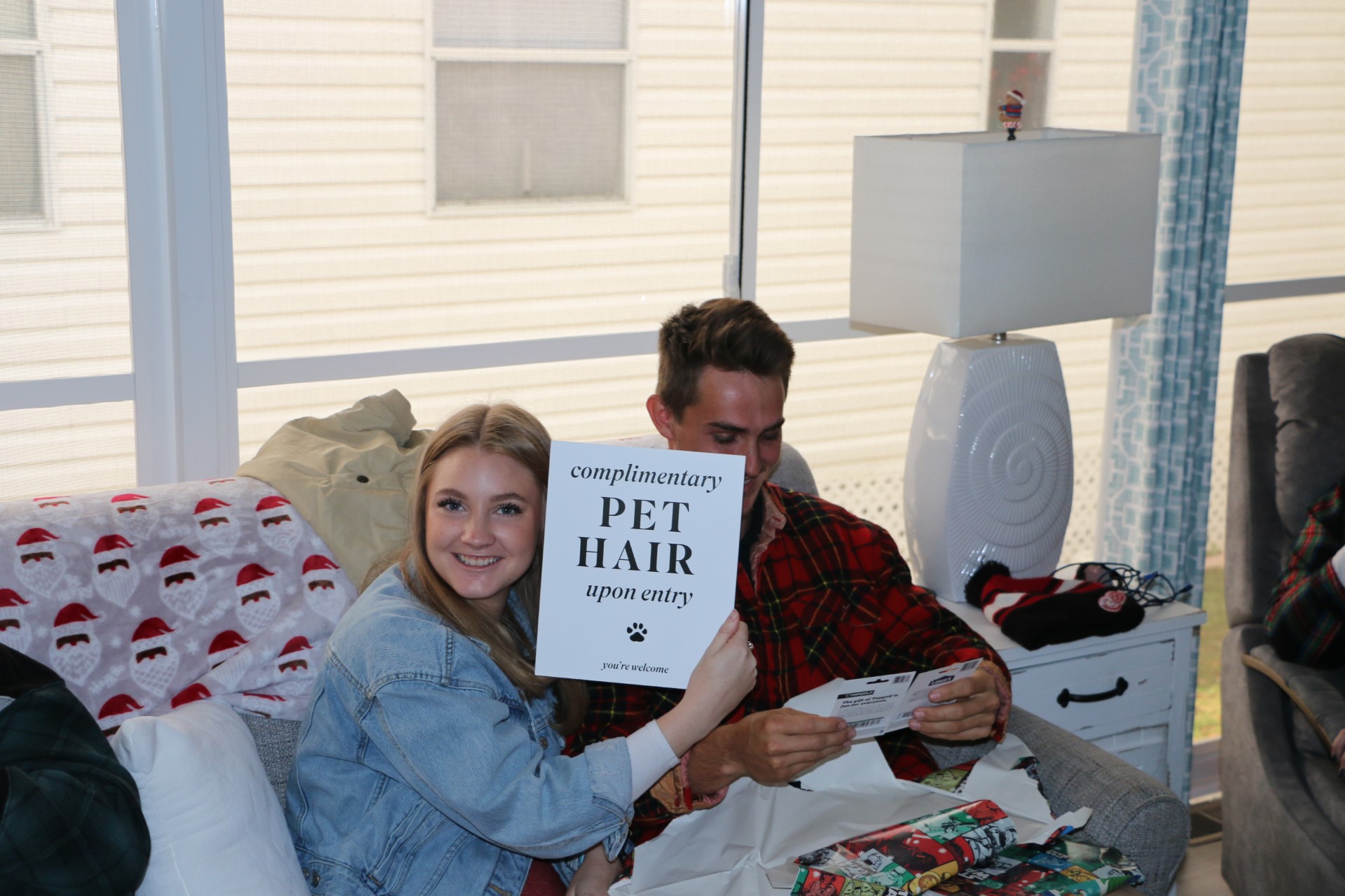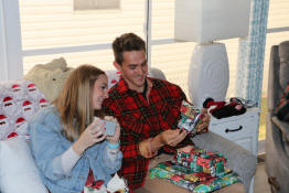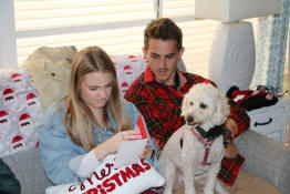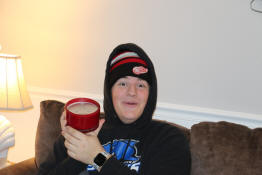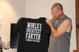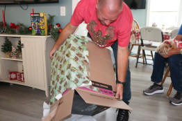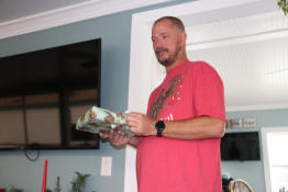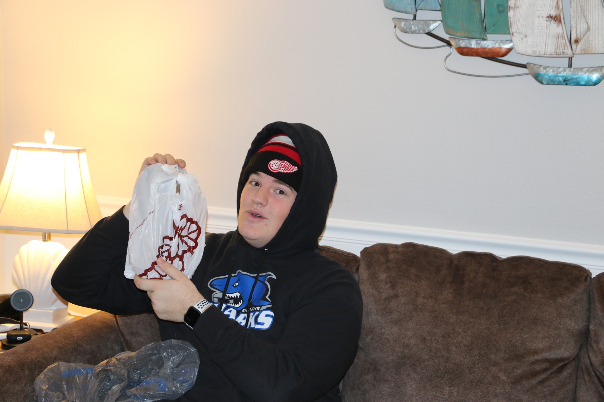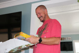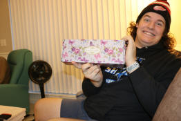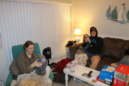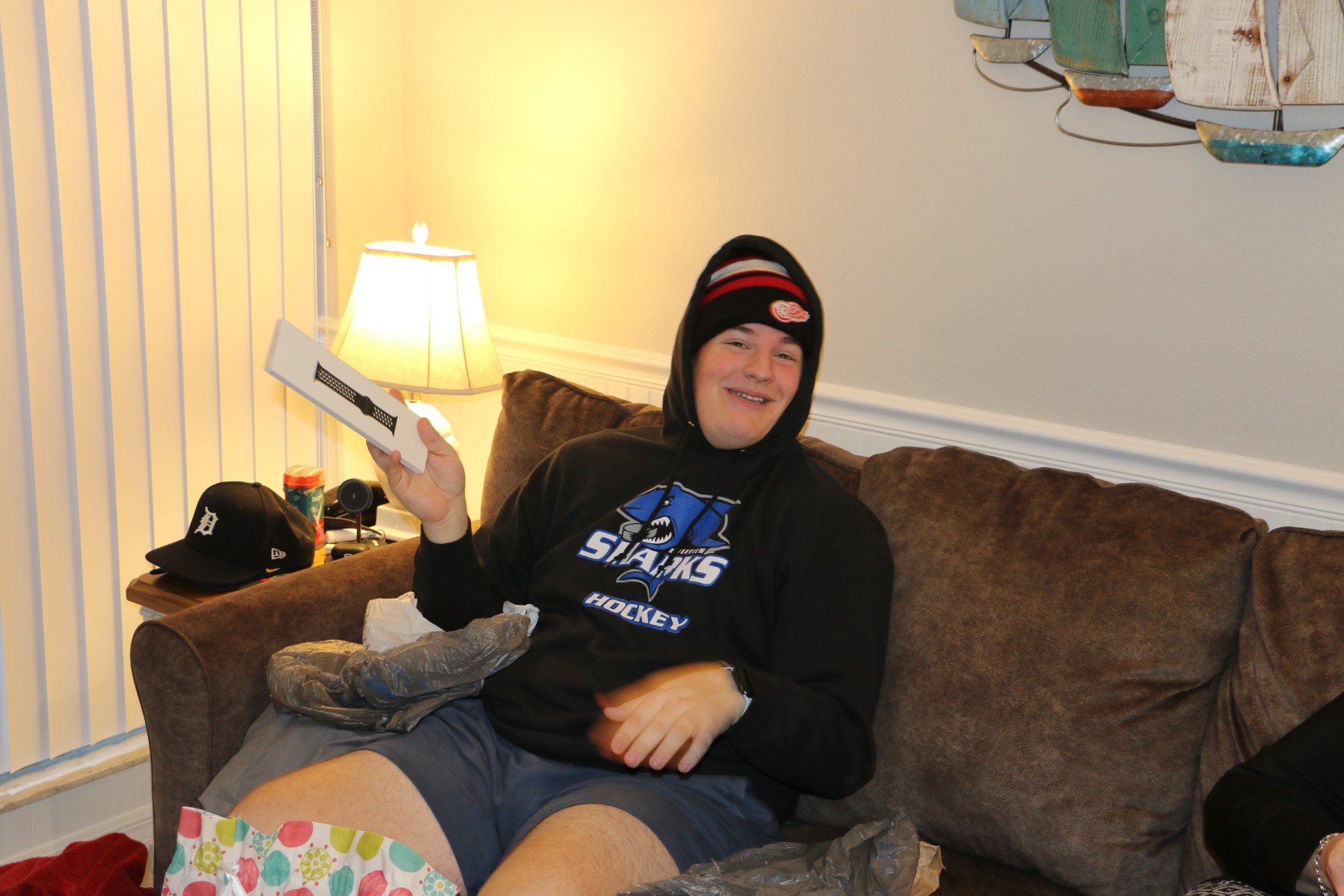 Jayden and Drew opening their cards from Grandpa Jerry & Grandma