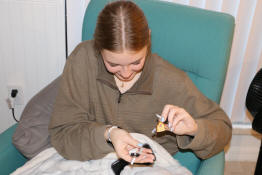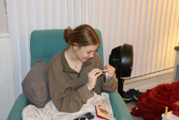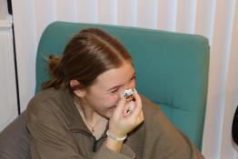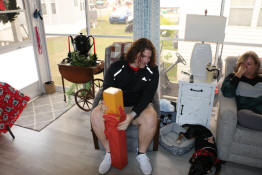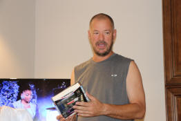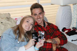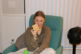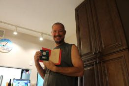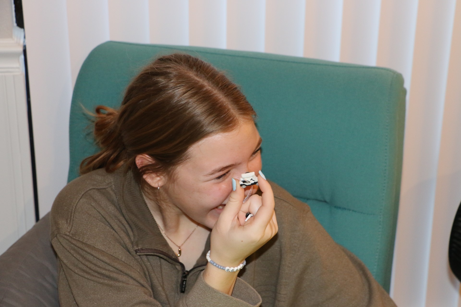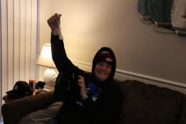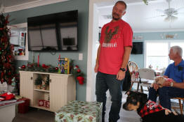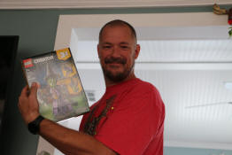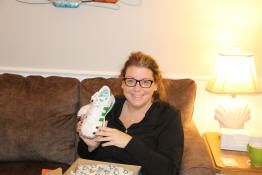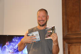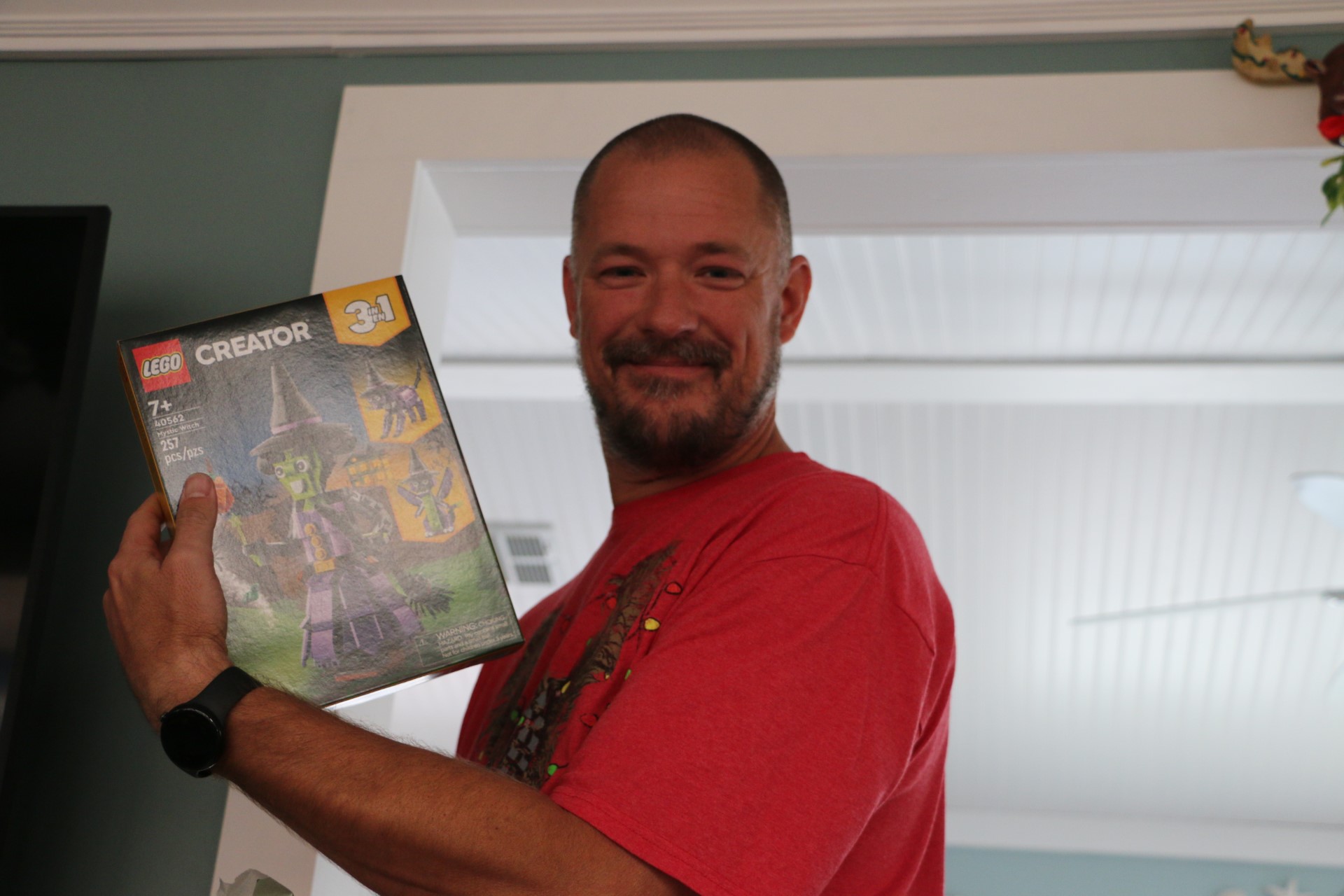 Drew showing off a Bob Ross Jibbitz collection for his Crocs!