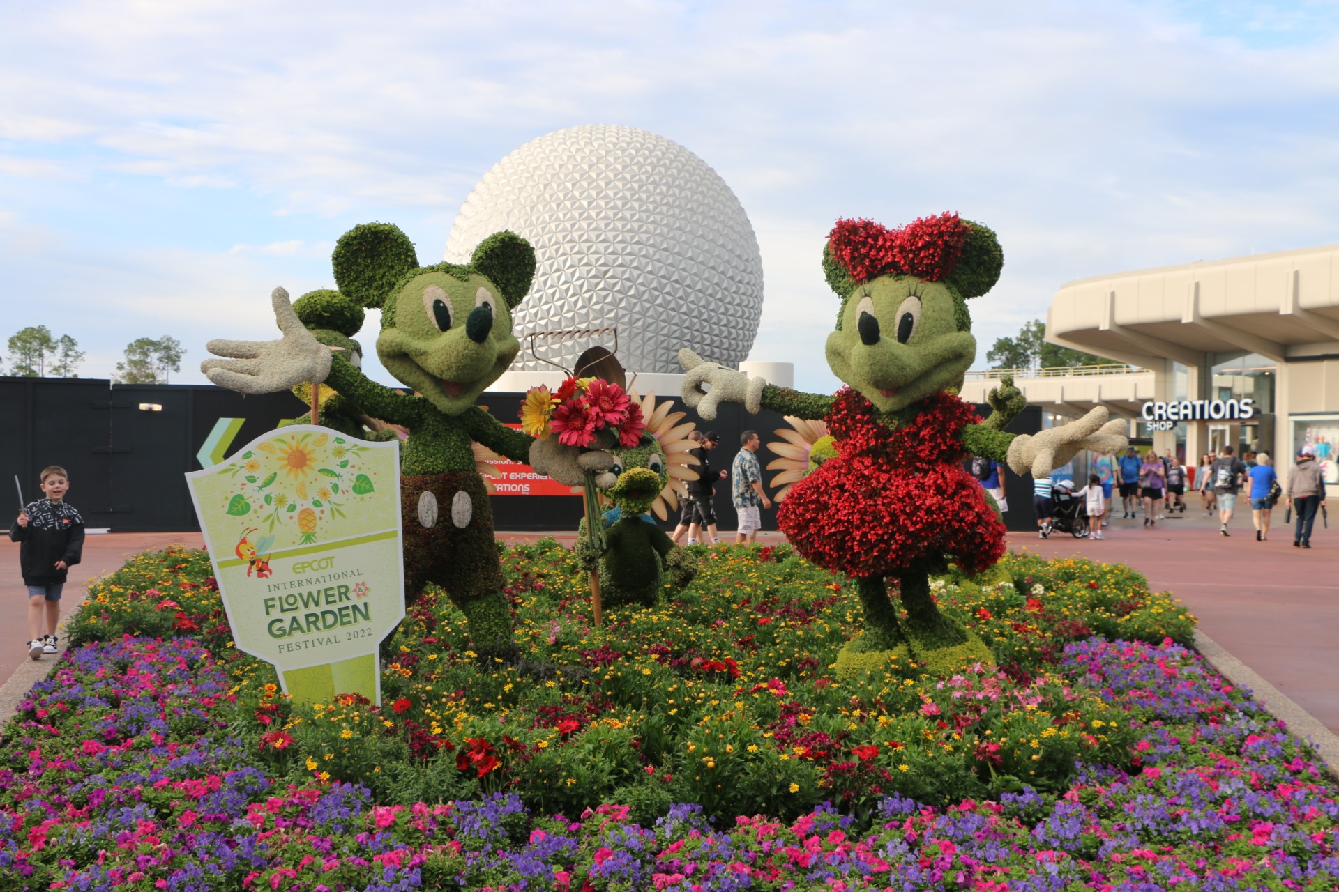 Mickey and Minnie Mouse welcoming us to the Epcot International