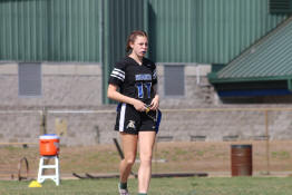 Riverview Lady Sharks flag football teammates walked to the