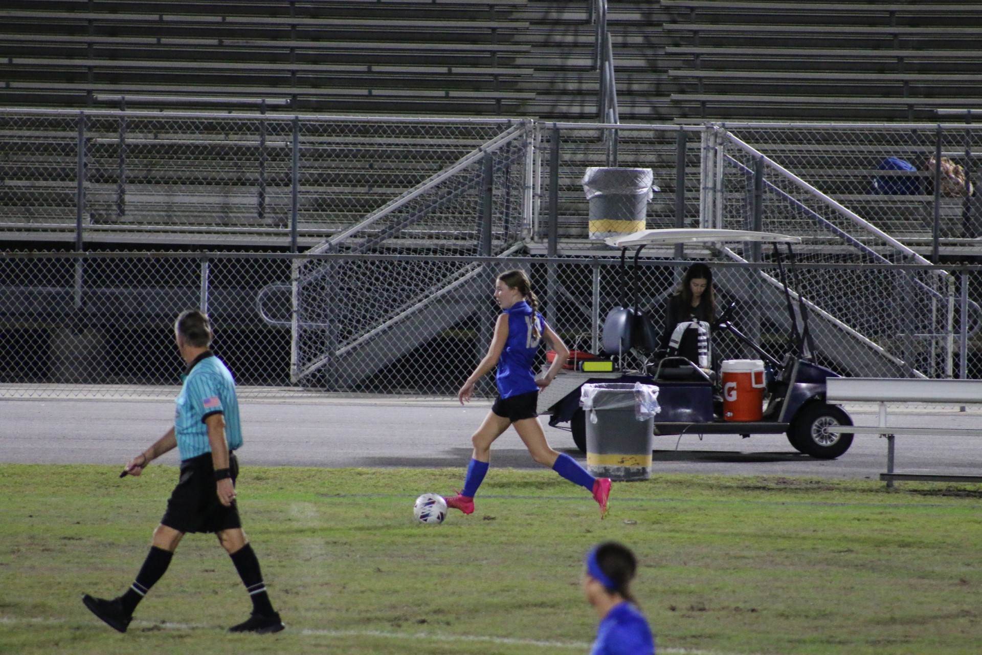 Jay driving down the field with the ball.