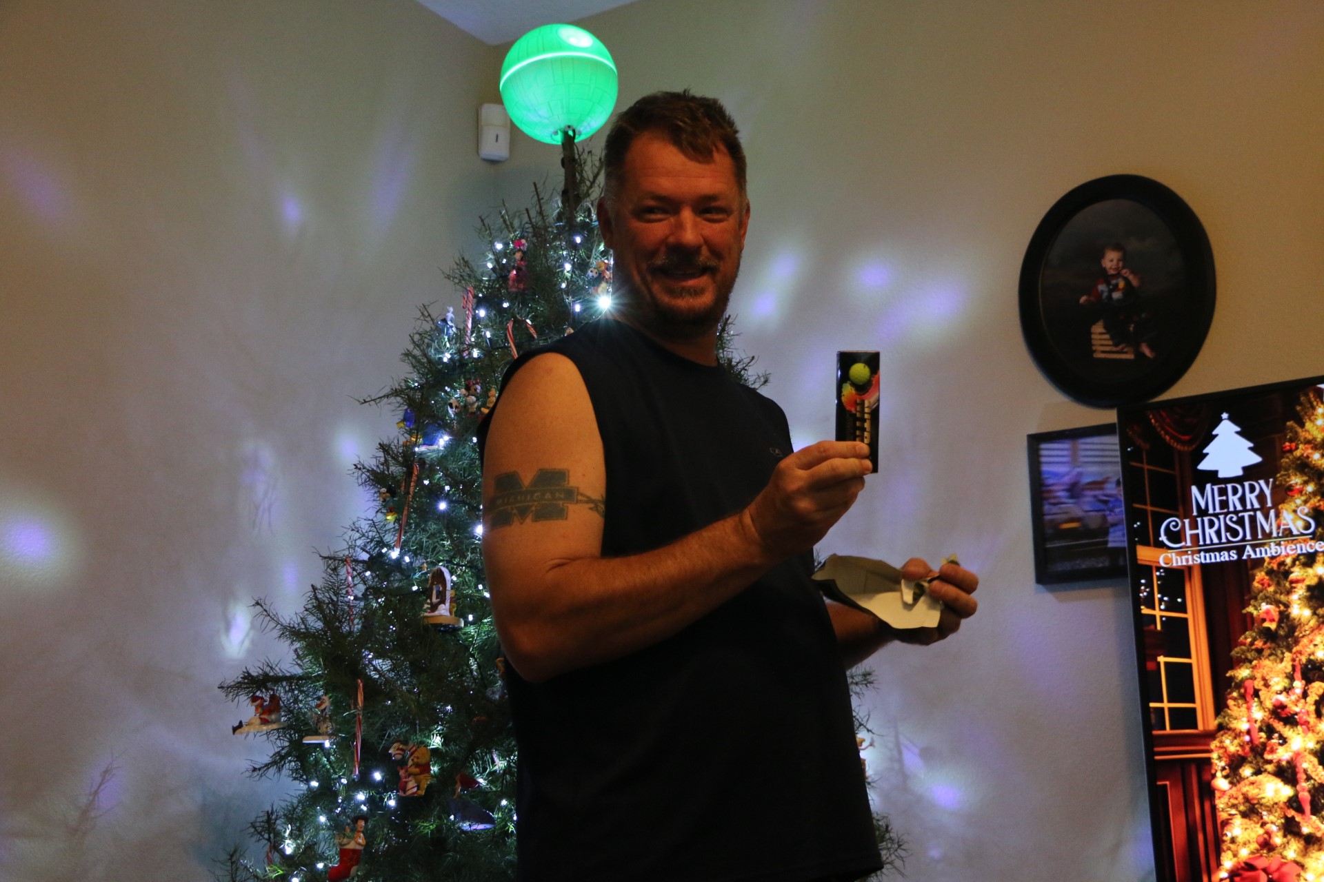 Rod holding up the two Lego boxes. Thank you Tyler and Rose!