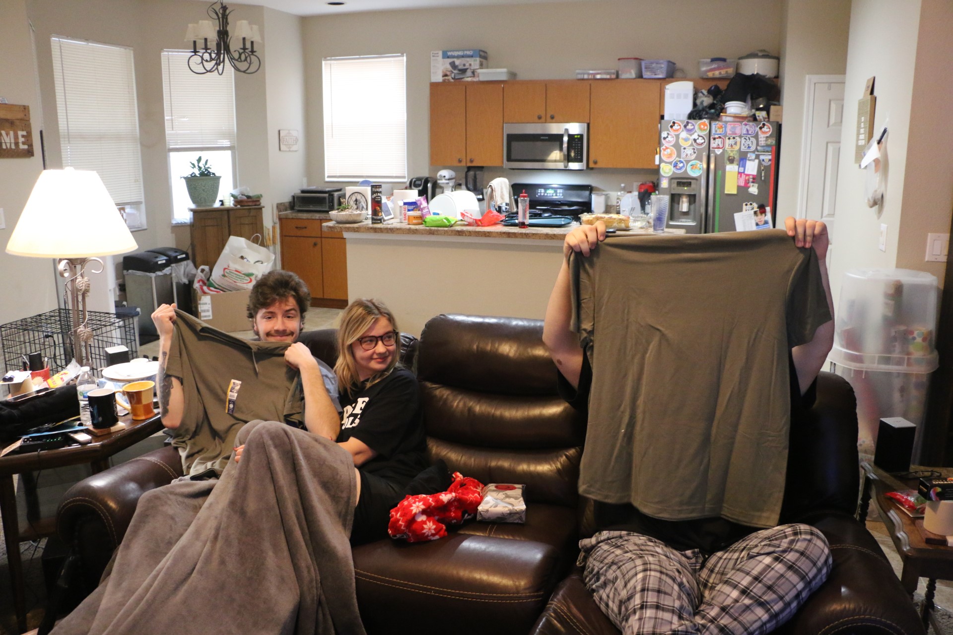 Tyler and Drew opening their Christmas pajamas from Rod &