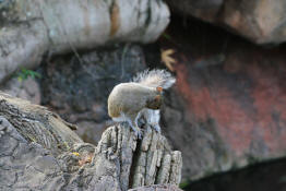 A squirrel atop a fence post on Discovery Island...