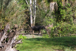 A water buffalo standing in the distance.