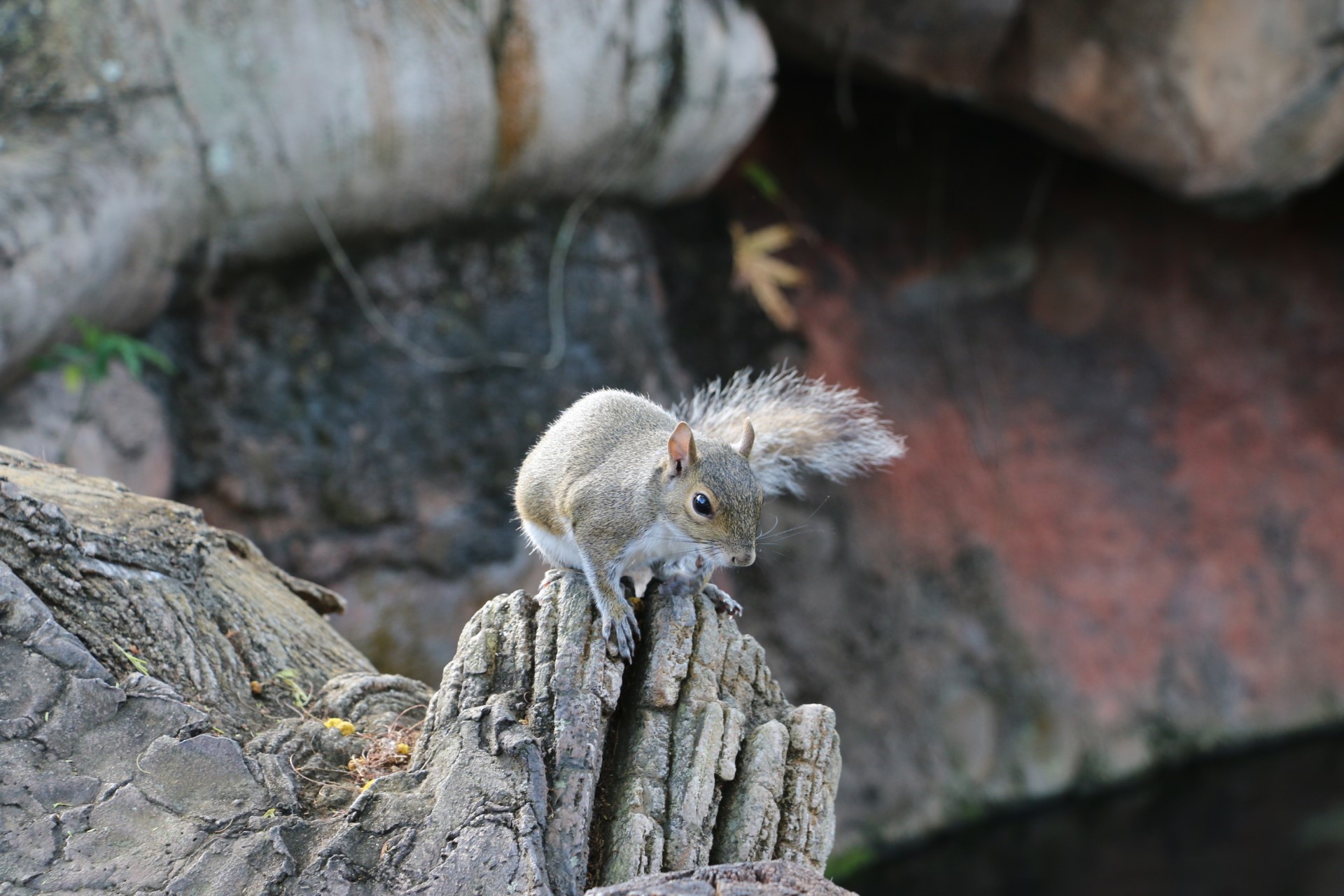 restaurant, we spotted this squirrel going through someone's