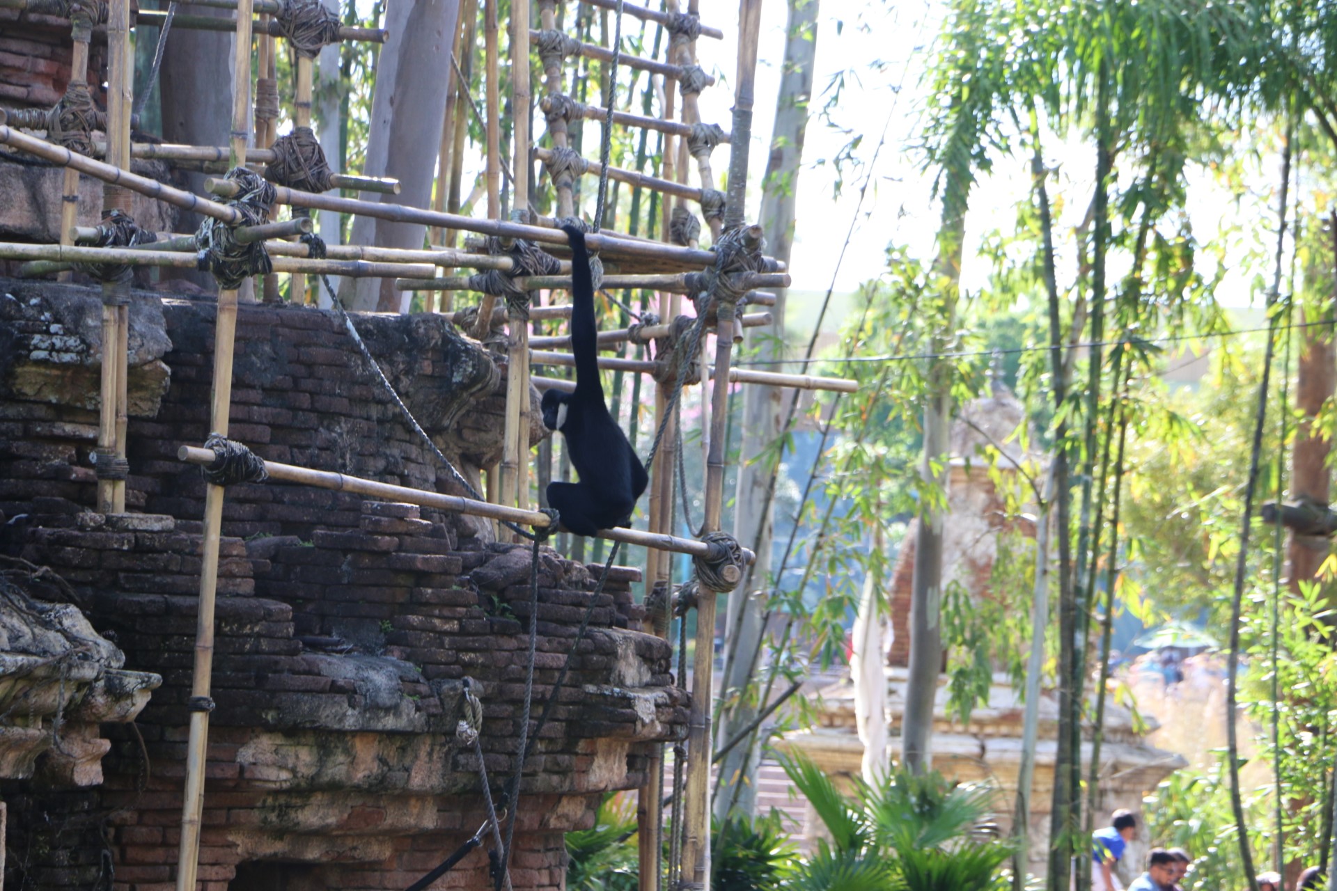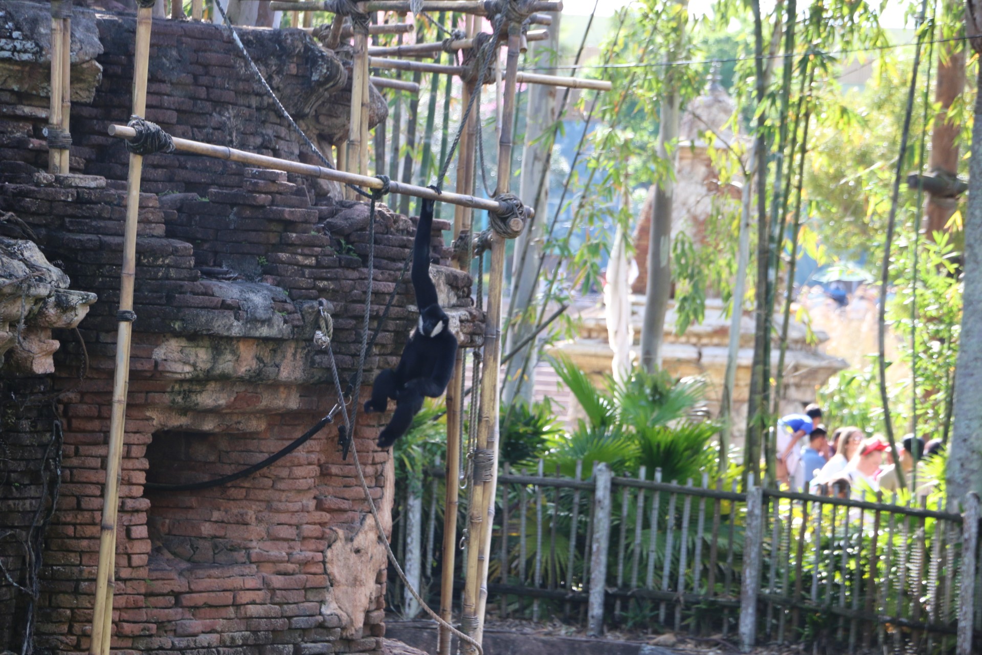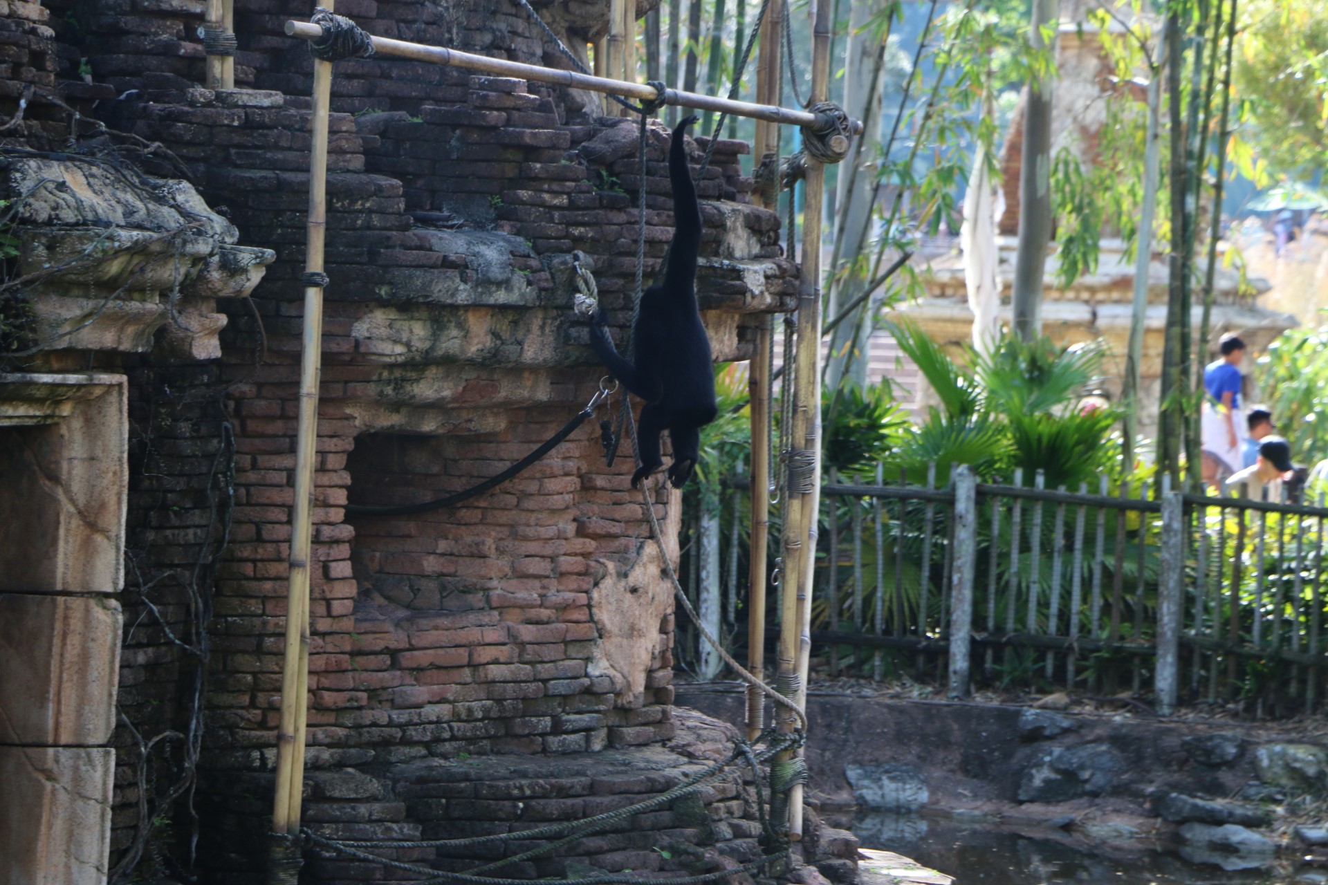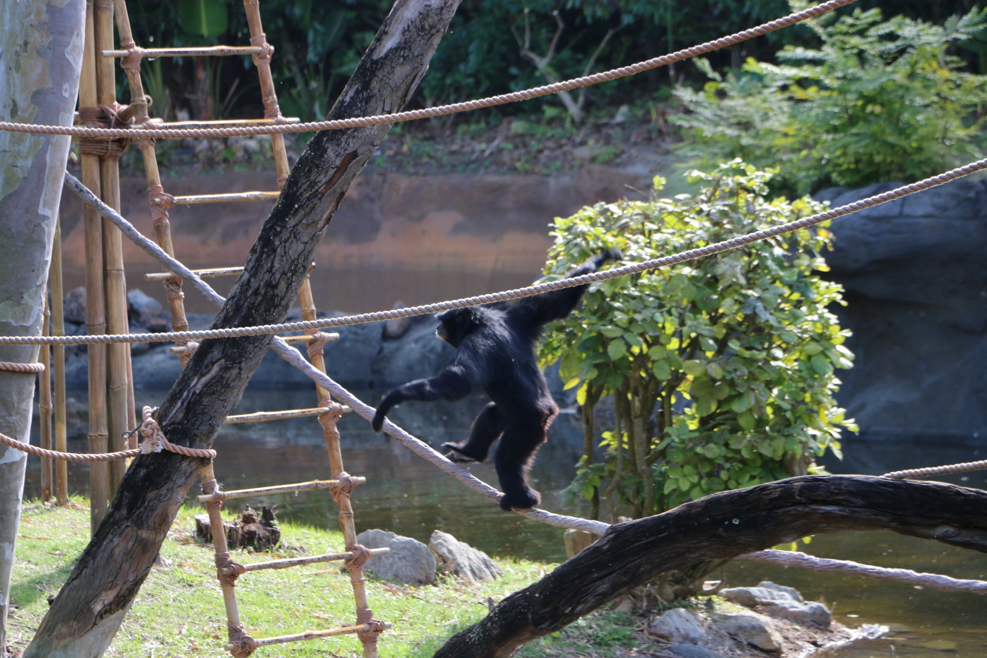 A few more pictures of the white-cheeked gibbon crossing a rope