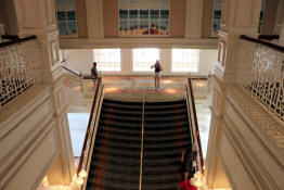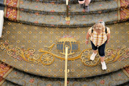 Grandma Terry walking past Cinderella's Coach on the staircase