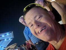 Jay, Drew, and Grandpa Gary watch as Steve poses for a photo