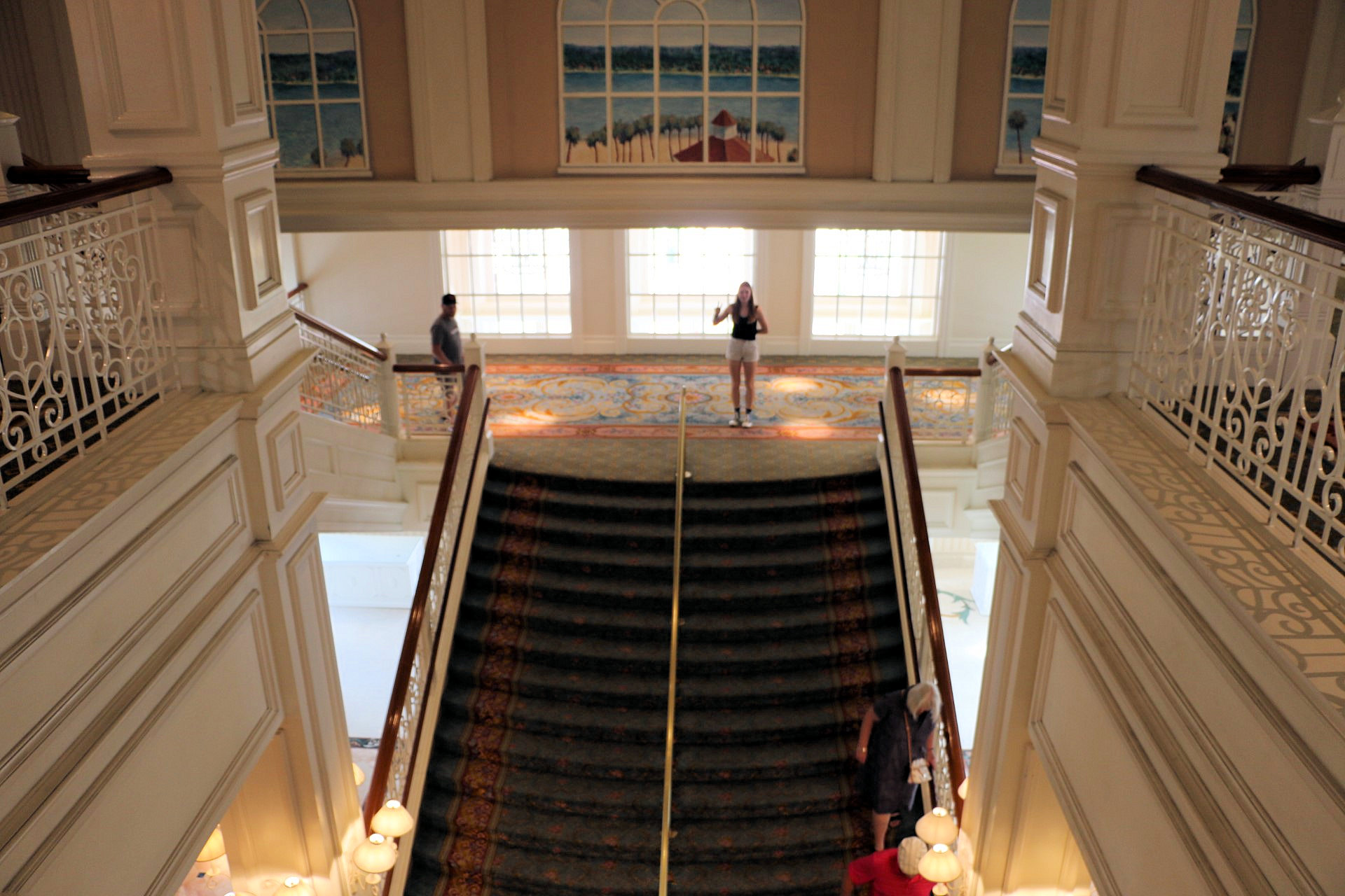 Jayden atop the staircase at Disney's Grand Floridian Resort &