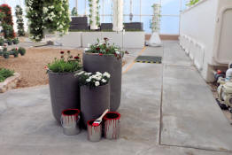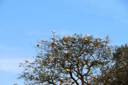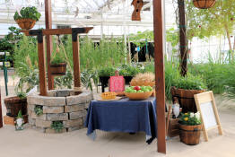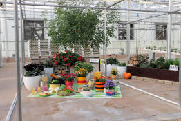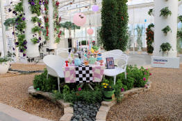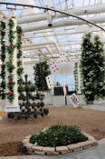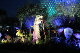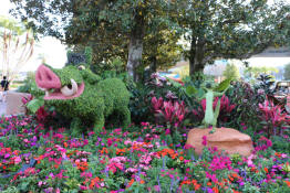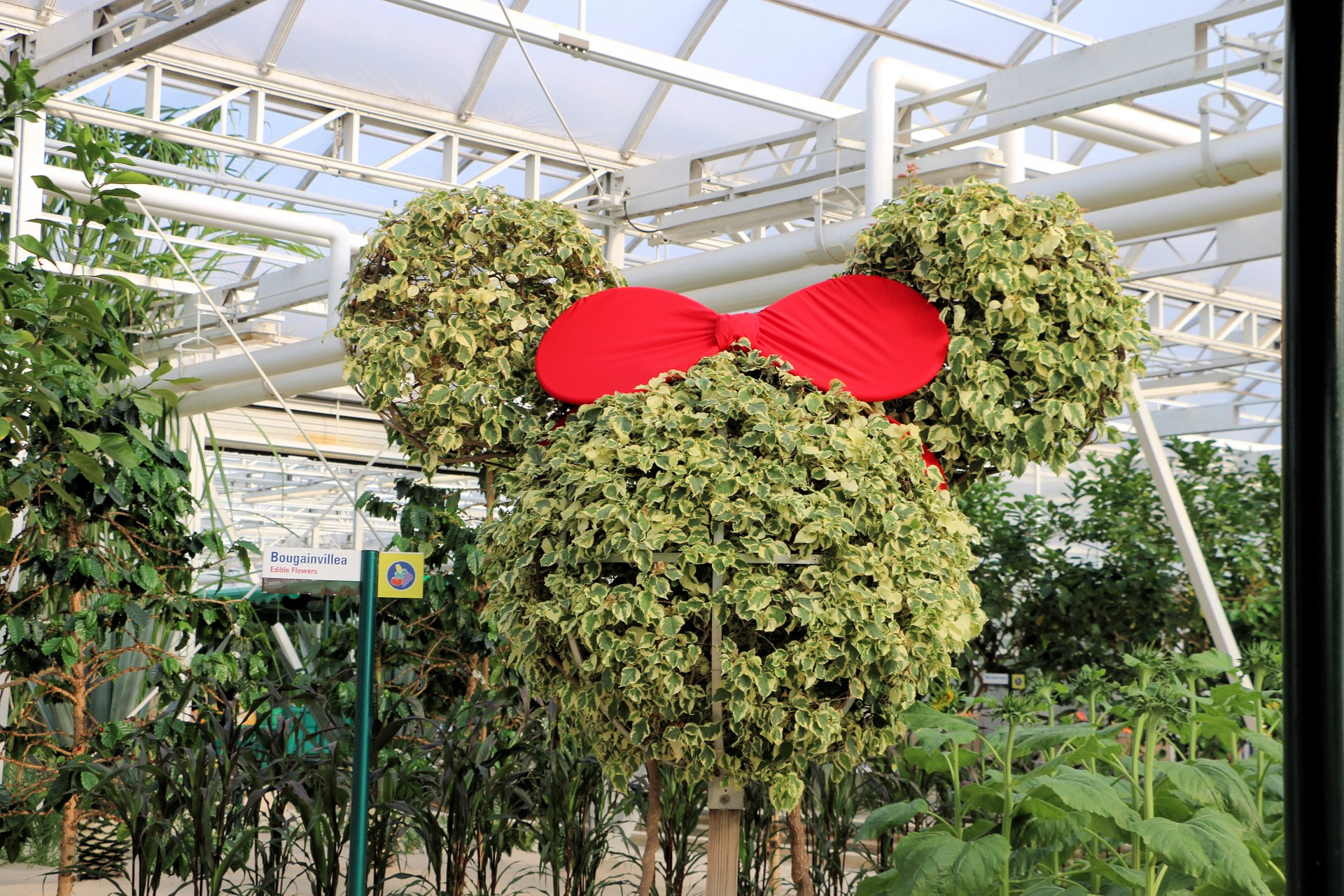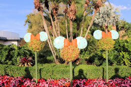 Some Minnie Mouse orange topiaries near the Odyssey Pavilion.