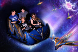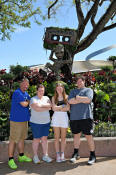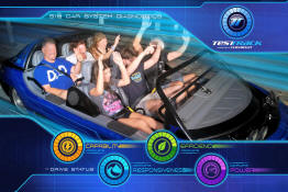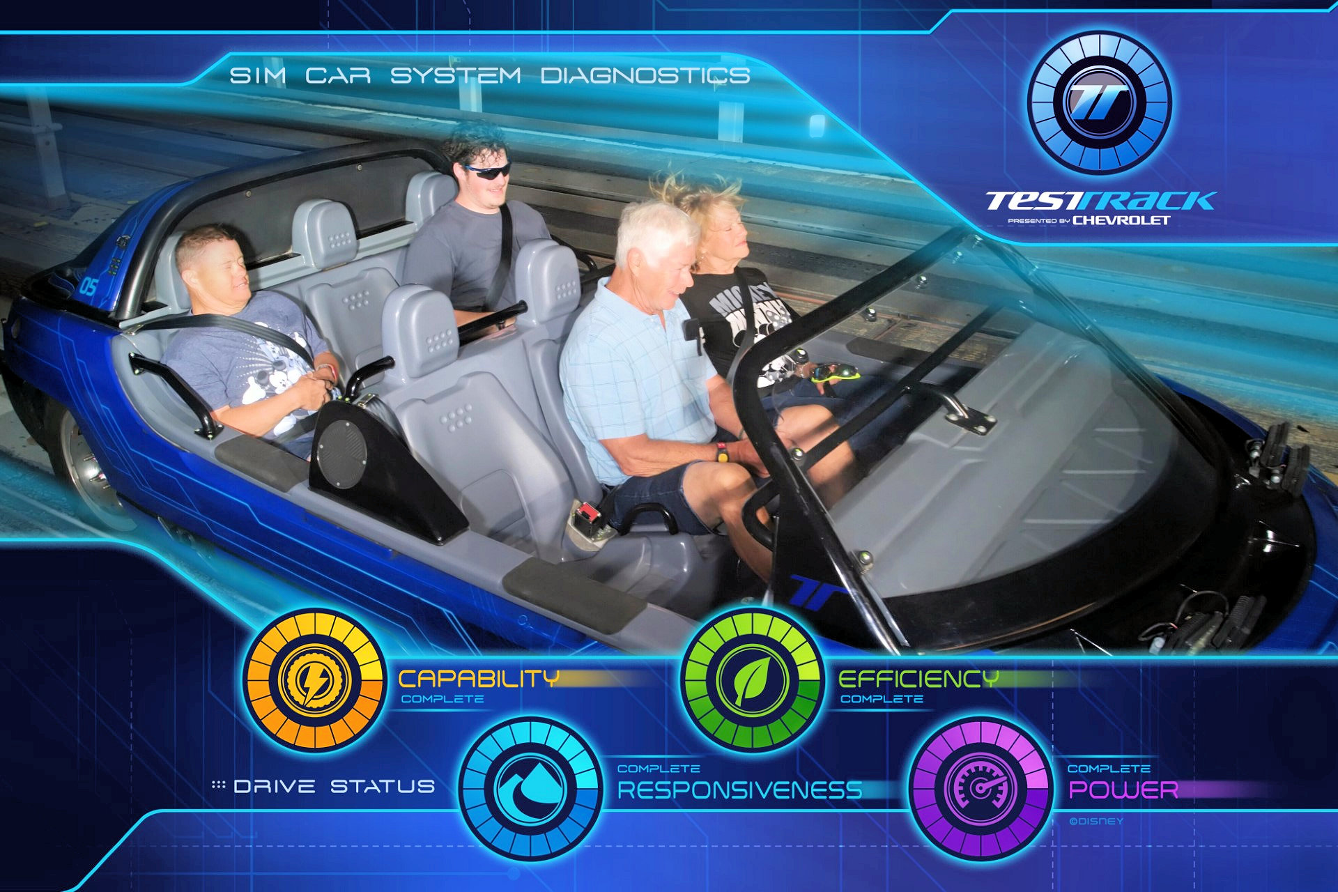 Steve, Drew, Grandpa Gary, and Grandma Terry on Test Track.