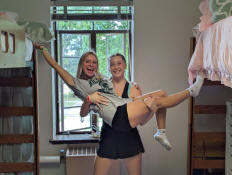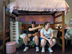 Jay standing near her girlfriend Hanna, as well as her roommate