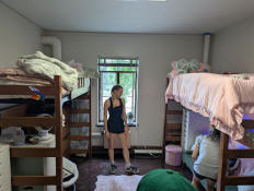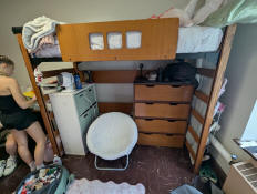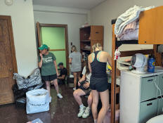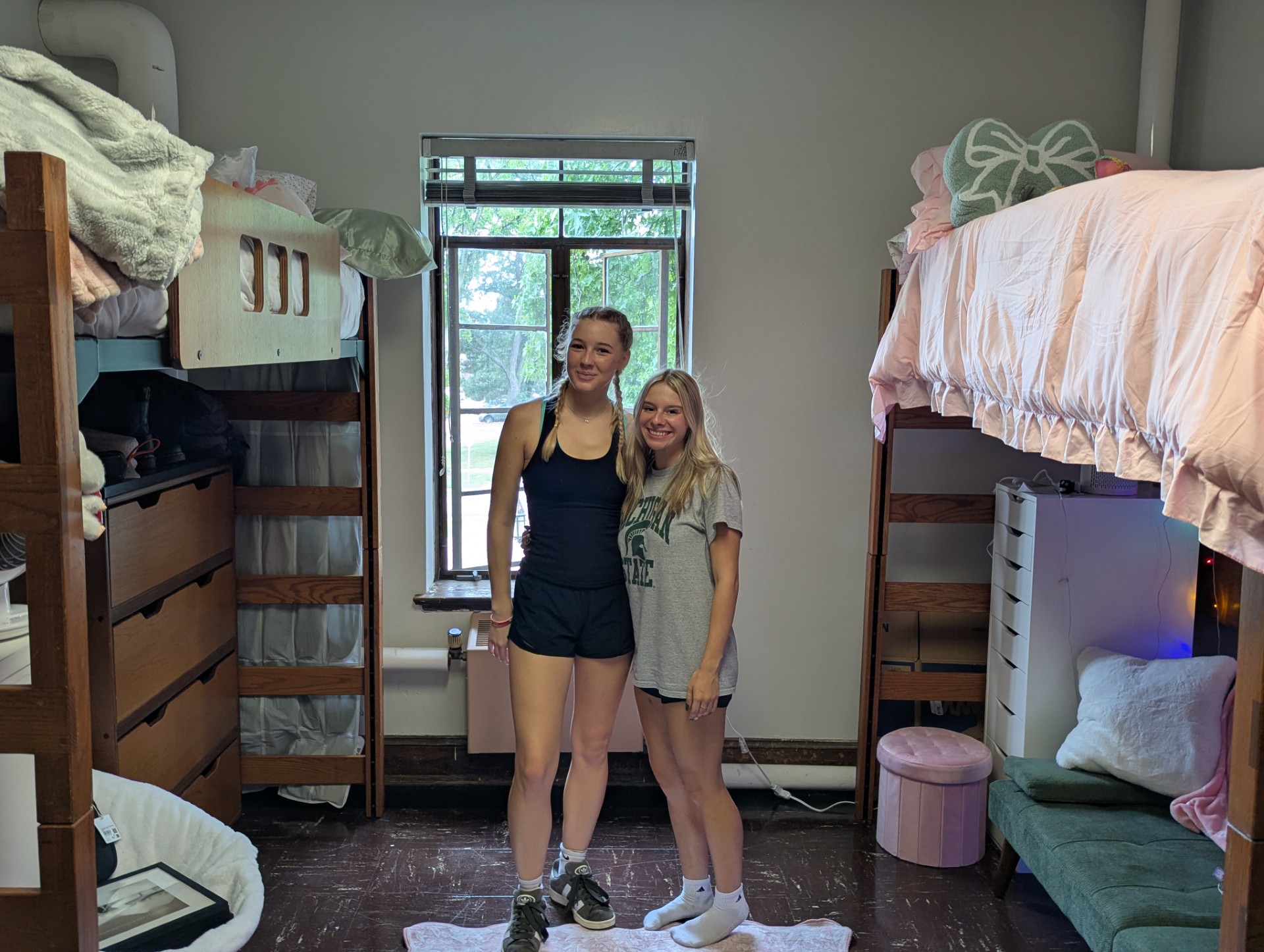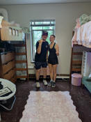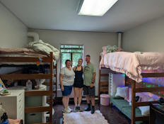 Jay working on setting up her side of the room.