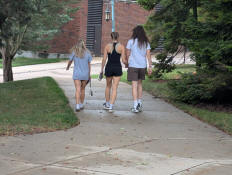 Avery, Jayden, and Hanna walking across campus...