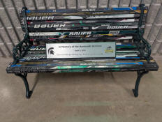 A hockey stick bench dedicated to the Humboldt Broncos, whose