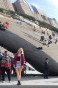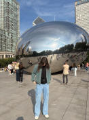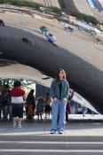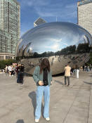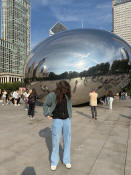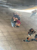Jay and Hana went under the Bean to go to the other side of it and they stopped to take a couple pictures from underneath as well...