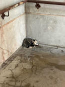 Jay and Hana's little friend in the stairwell to the bridge across the Chicago River.