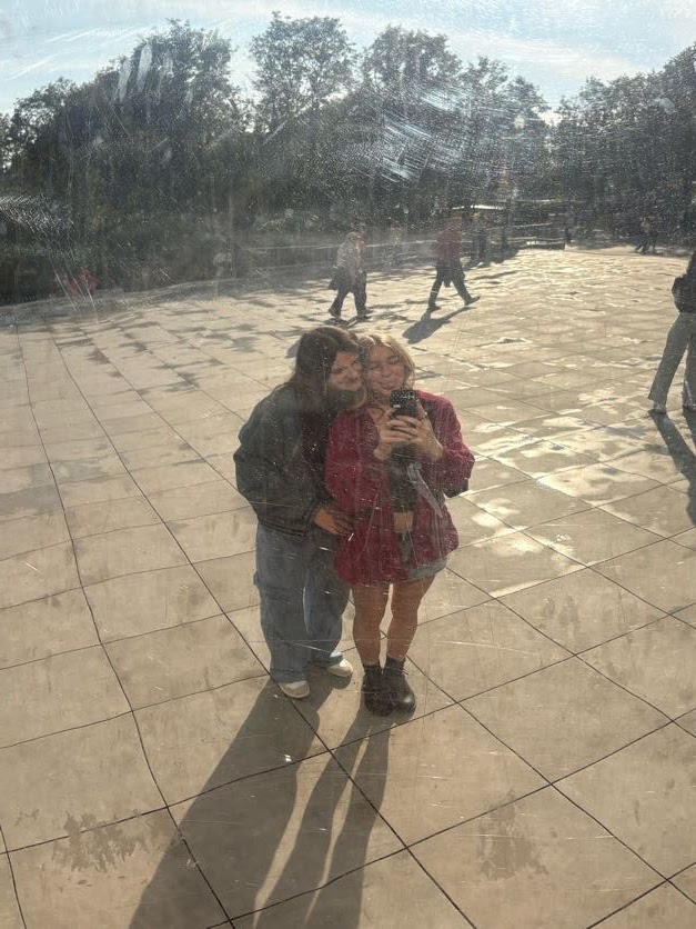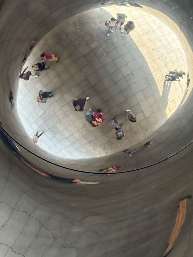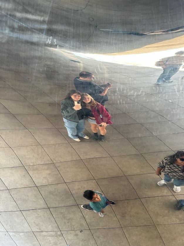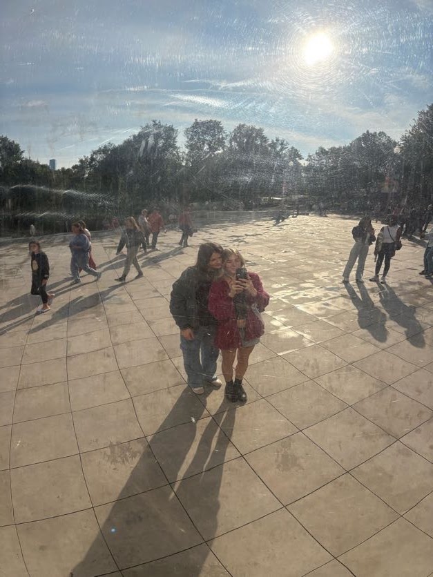 Hana and Jayden decided to take a couple pictures in the reflection of the Bean..