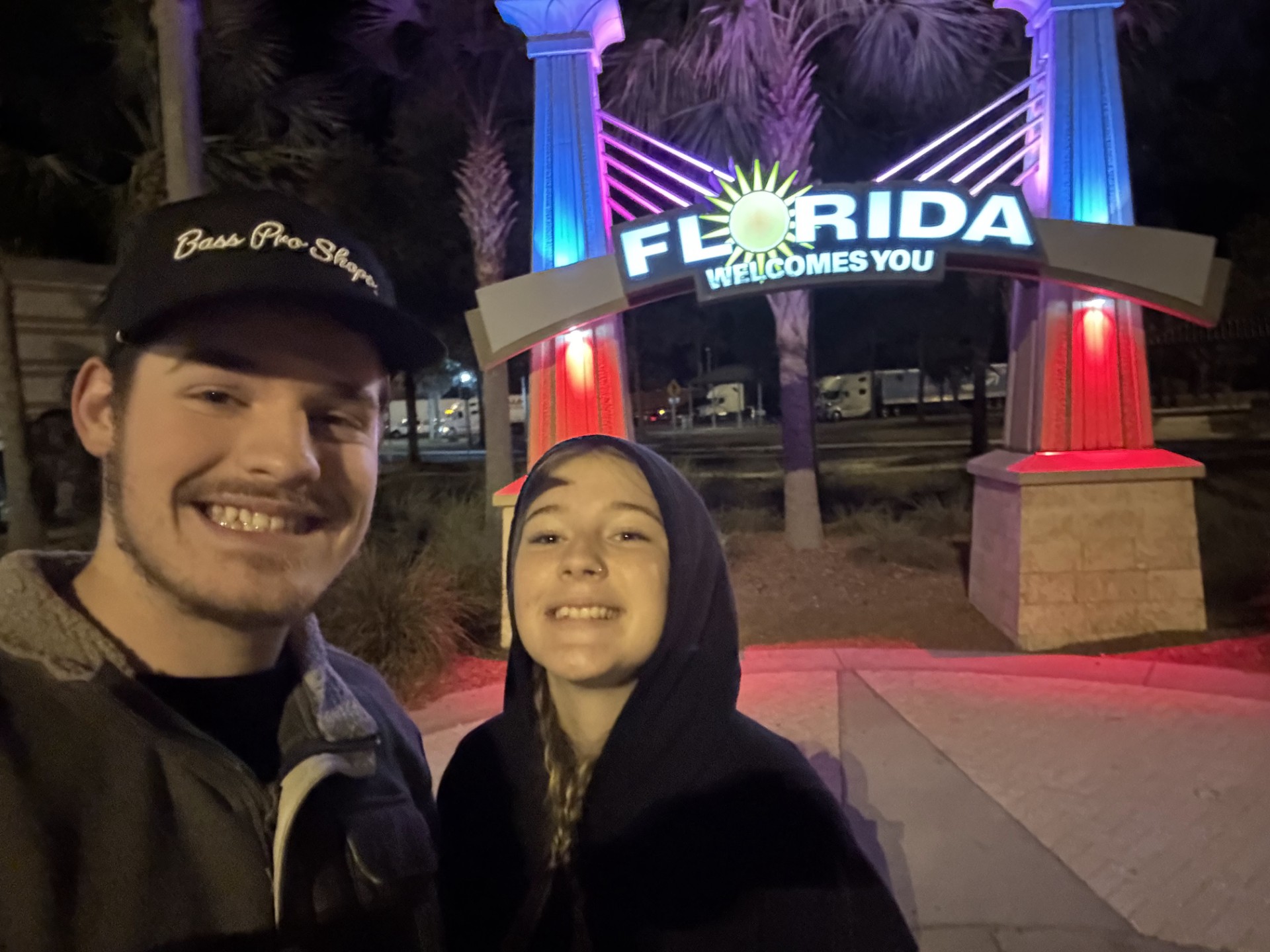 | Drew and Jayden drove south to Florida to spend Christmas with