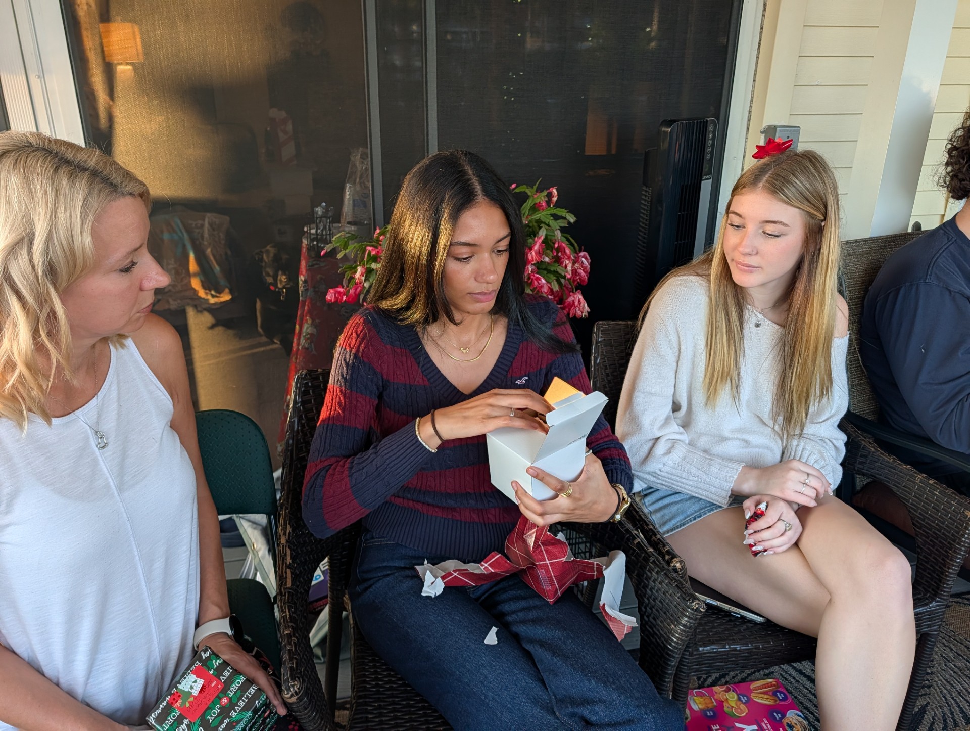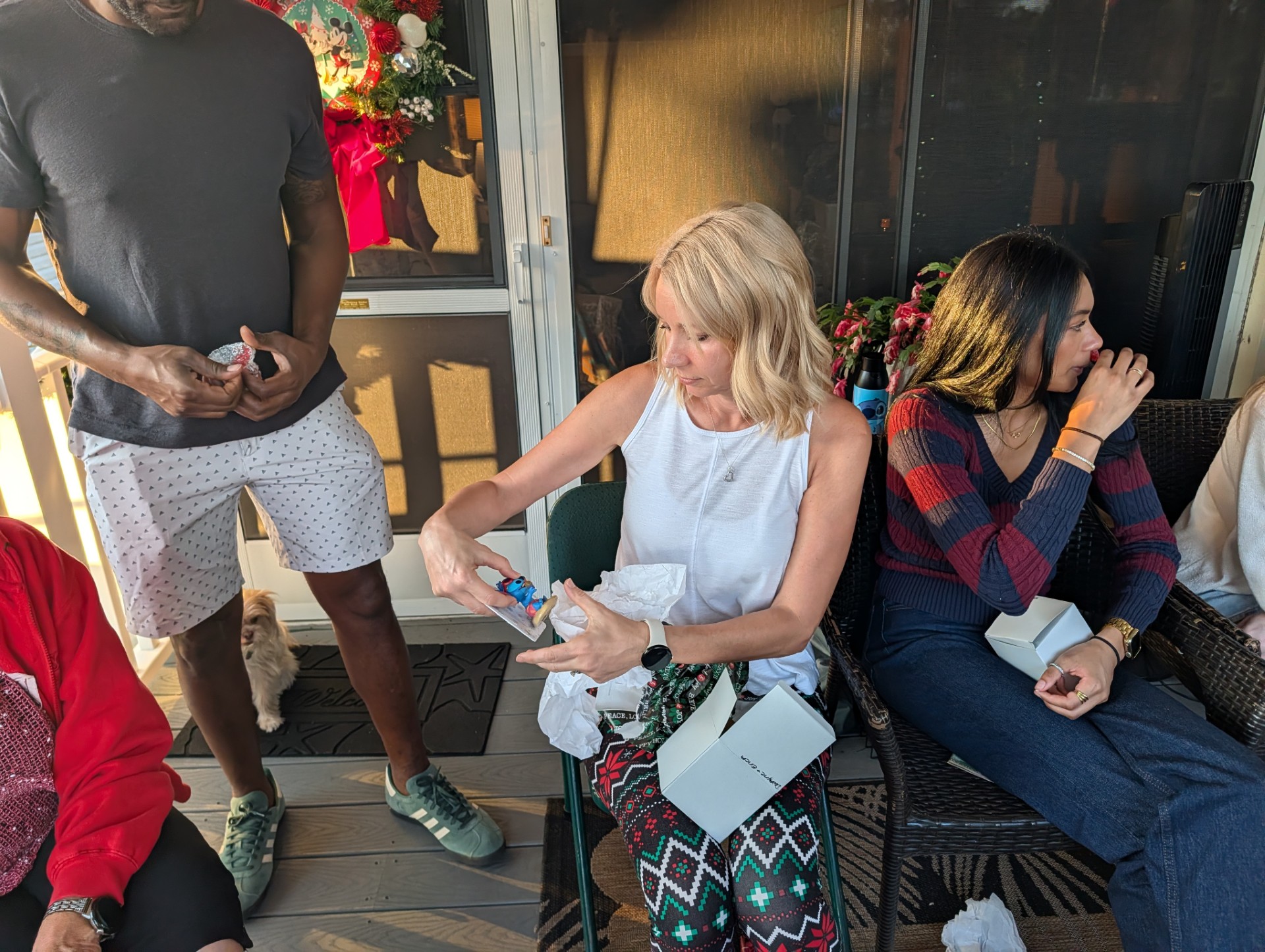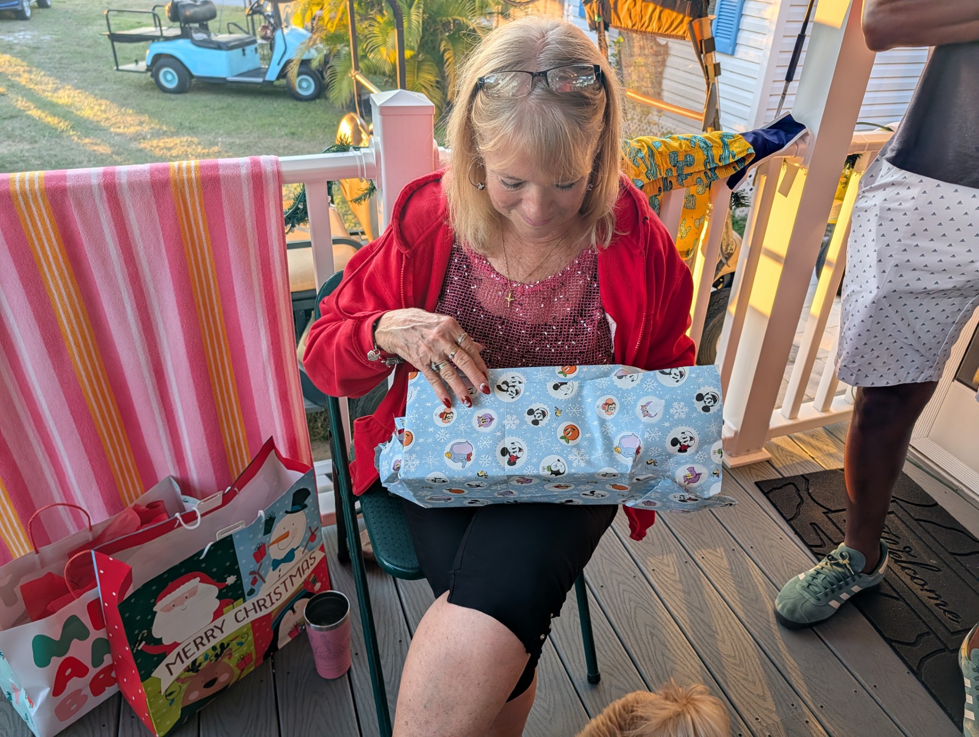 Aunt Erica opened the gift for her and Uncle Dwayne from Grandpa