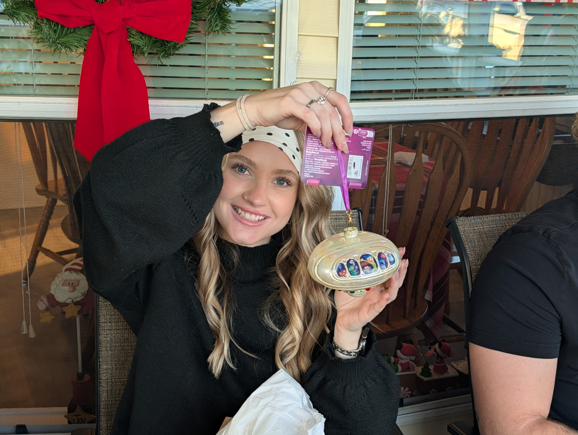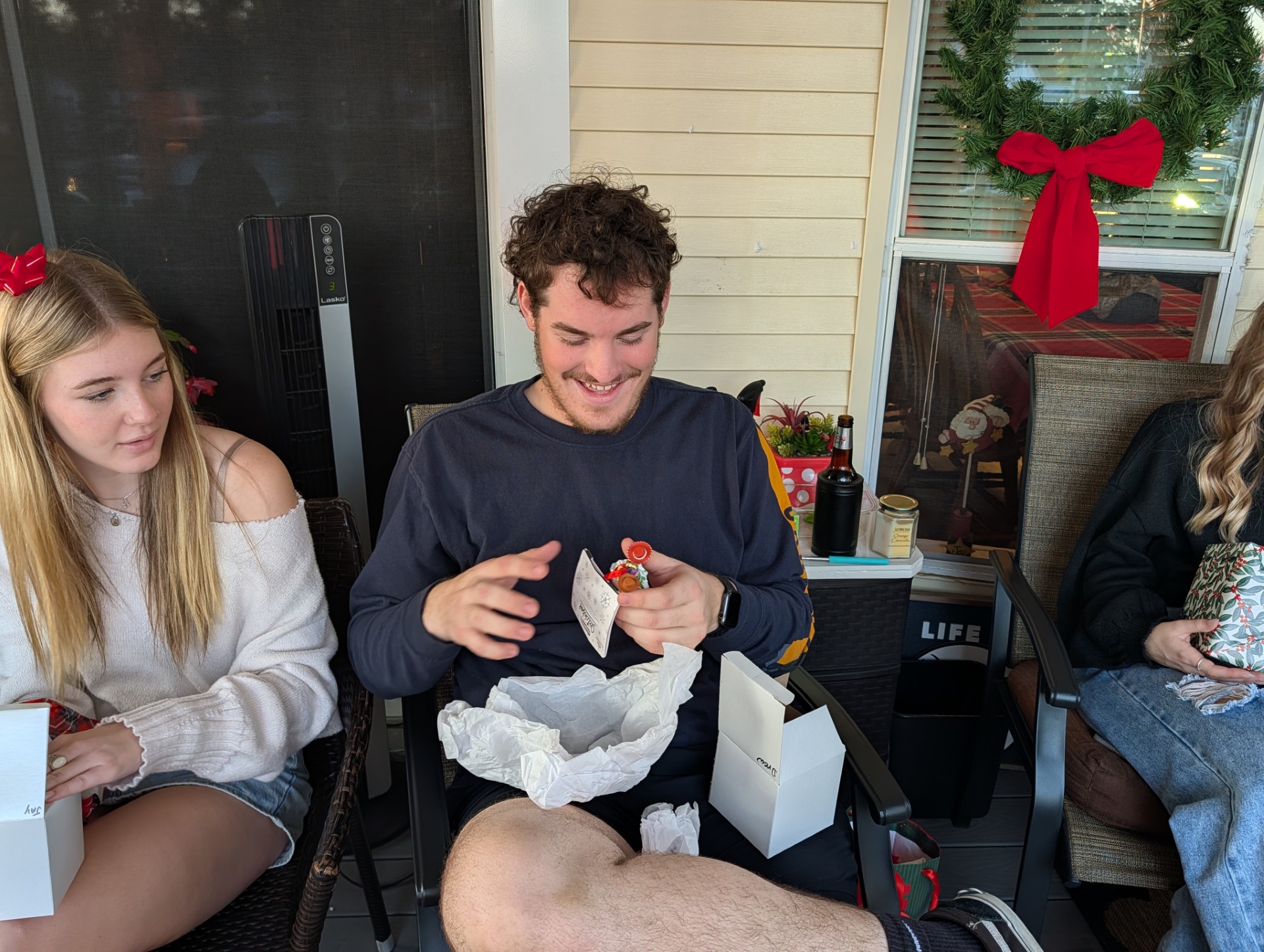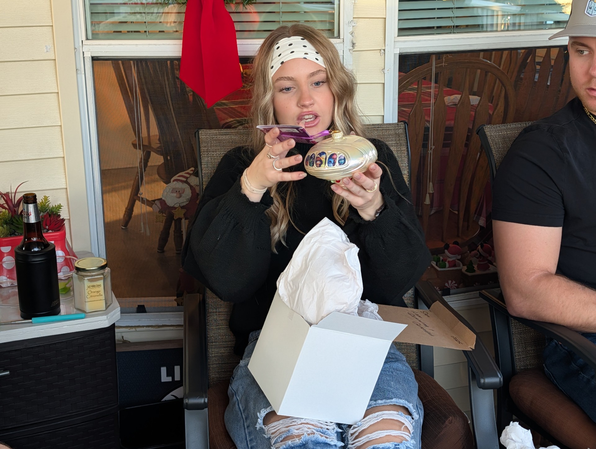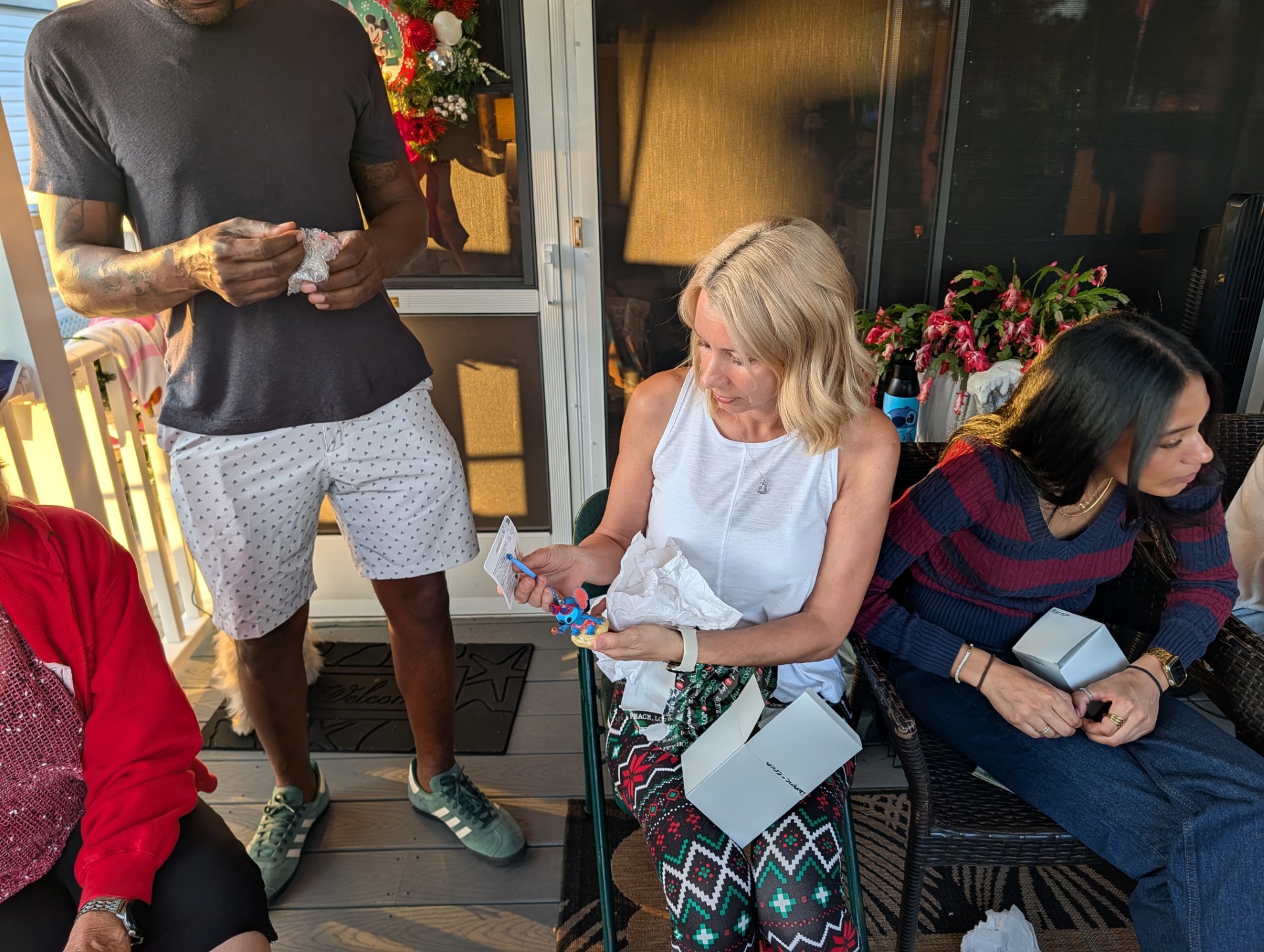 Aunt Erica opened the gift for her and Uncle Dwayne from Grandpa