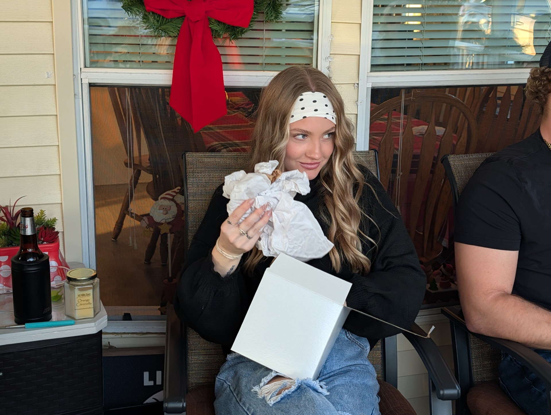 Jayden opening her gift from Grandpa Gary & Grandma Terry...