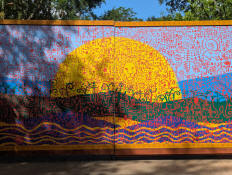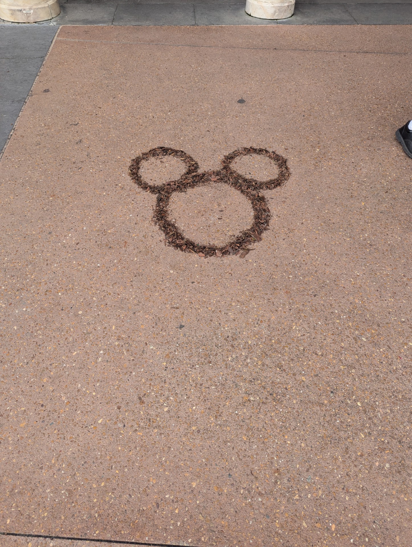 A janitor had just finished sweeping leaves into a Mickey Mouse