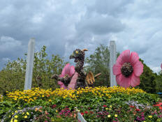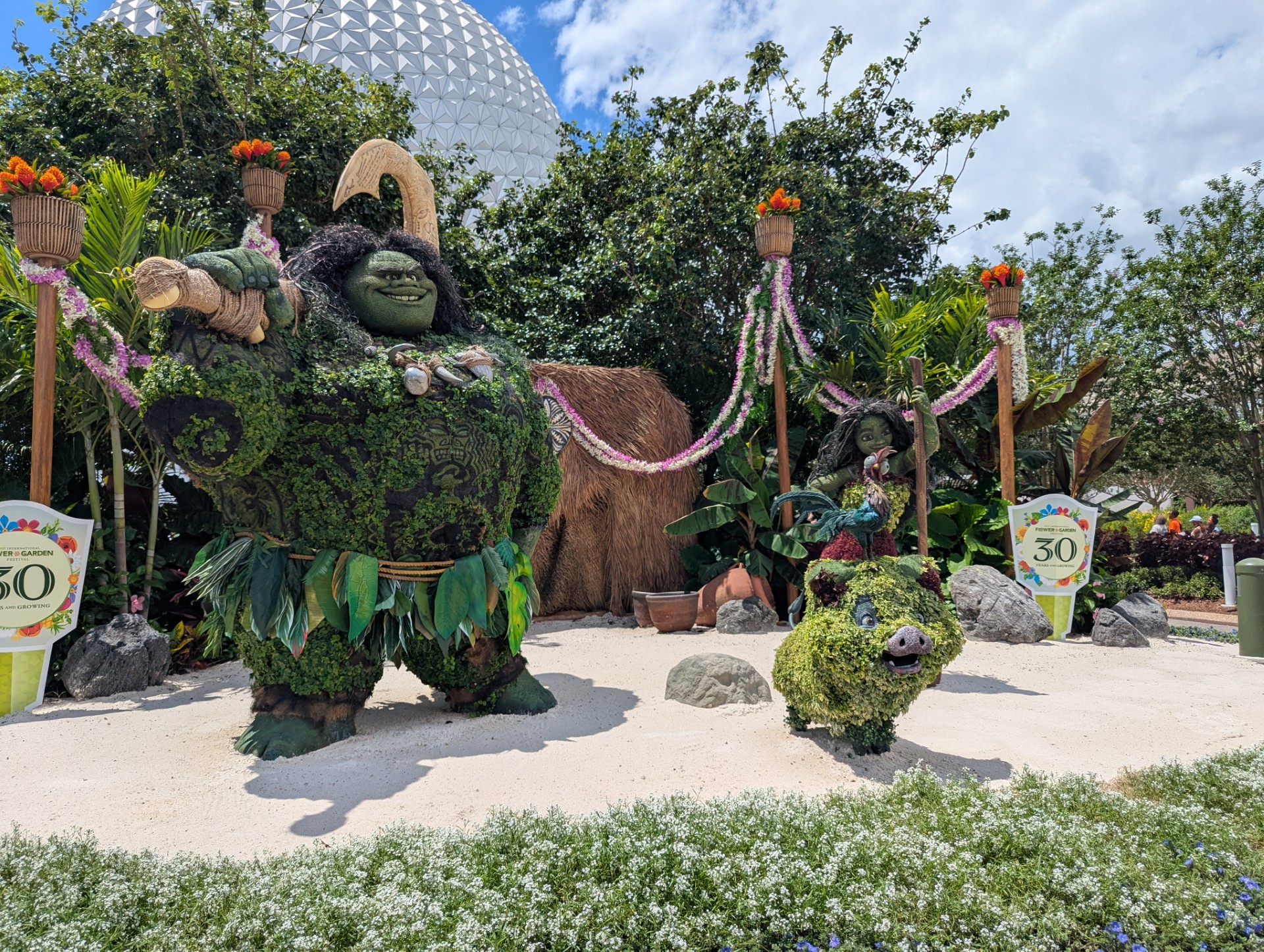 The topiaries of the movie Moana 2, including Maui, Hei Hei, Pua, and of course, Moana!